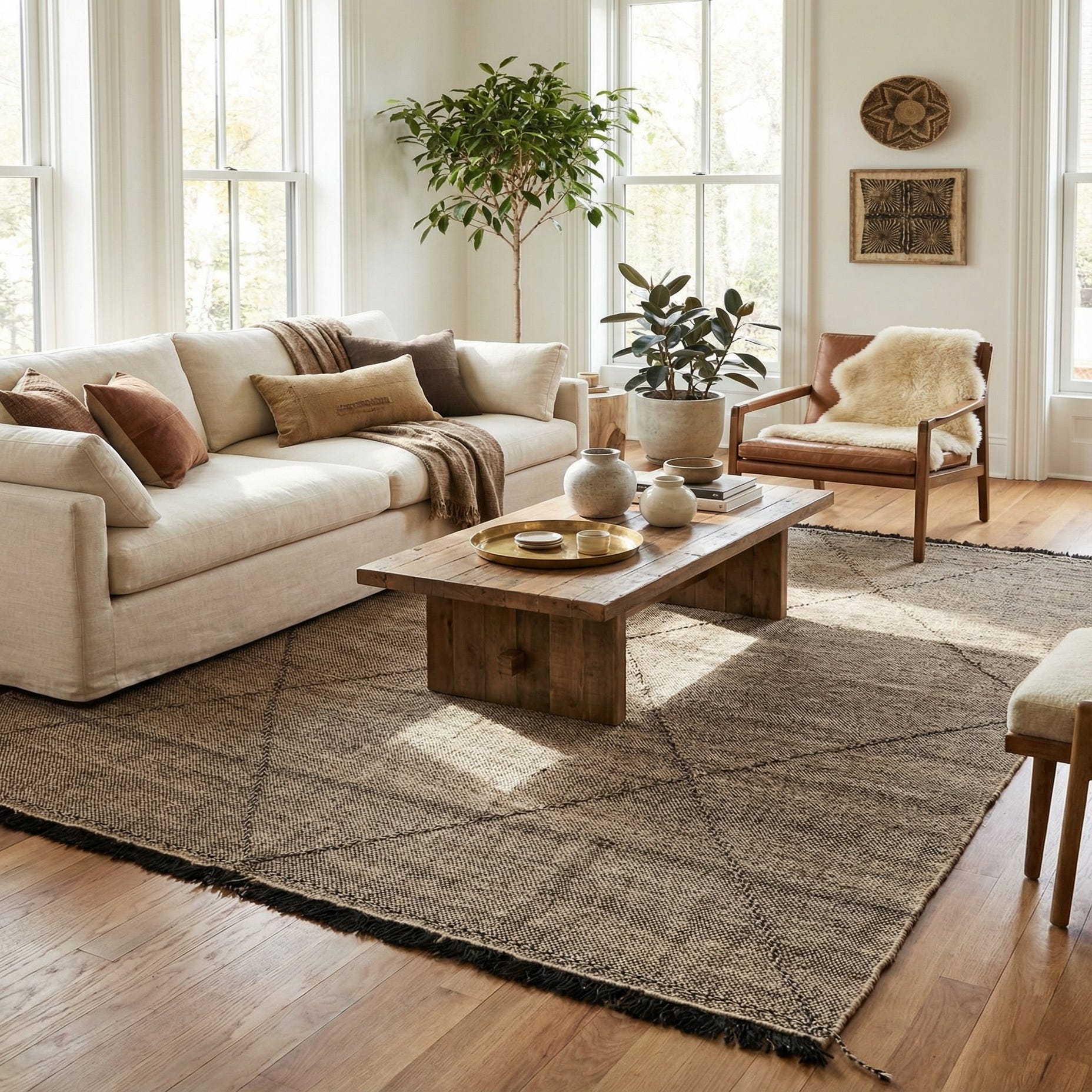 Primary color is Natural. Colors in this rug include: Natural, Brown.