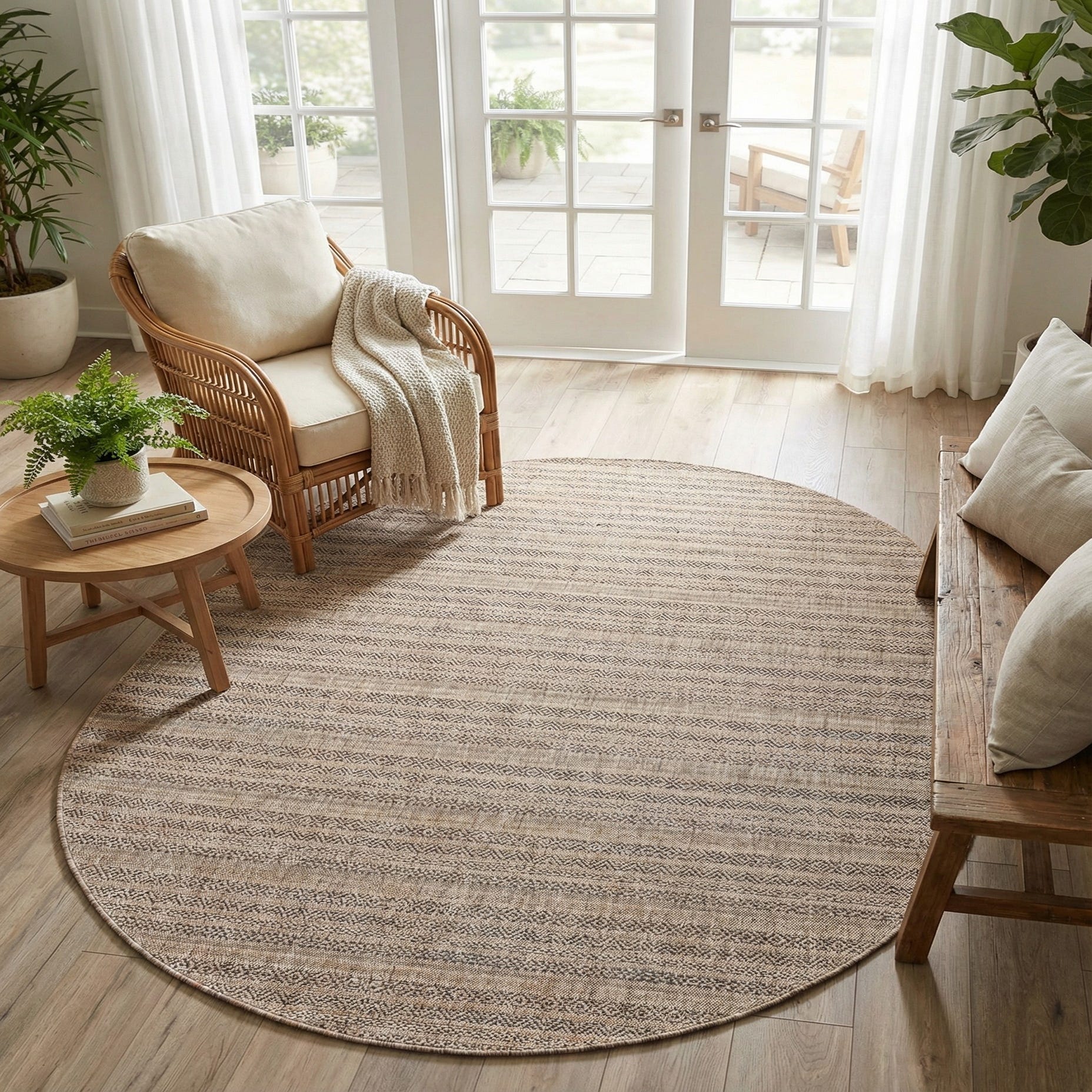 7' 10 x 10' Washable Striped Indoor / Outdoor Oval Rug