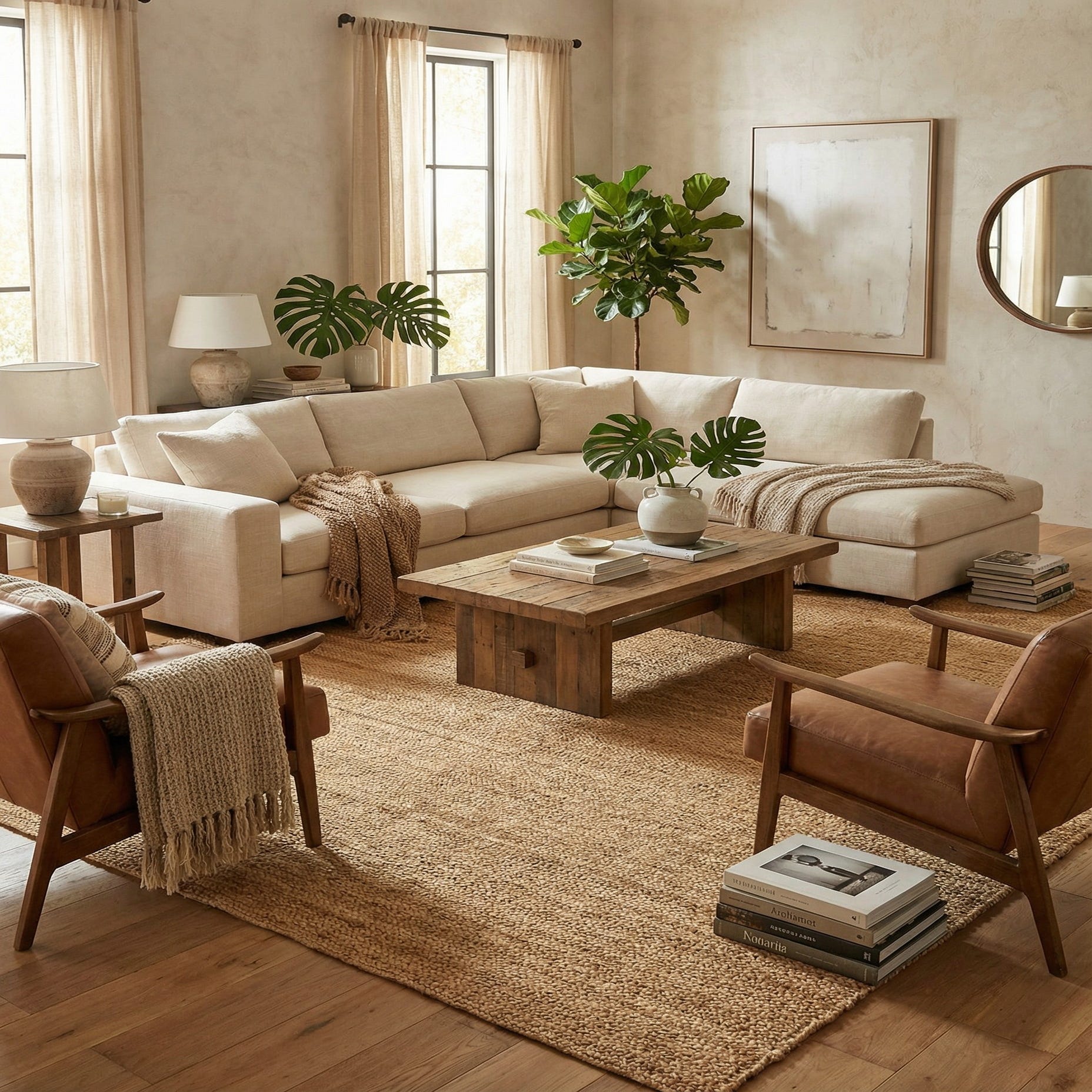 • Cognac leather sectional sofa