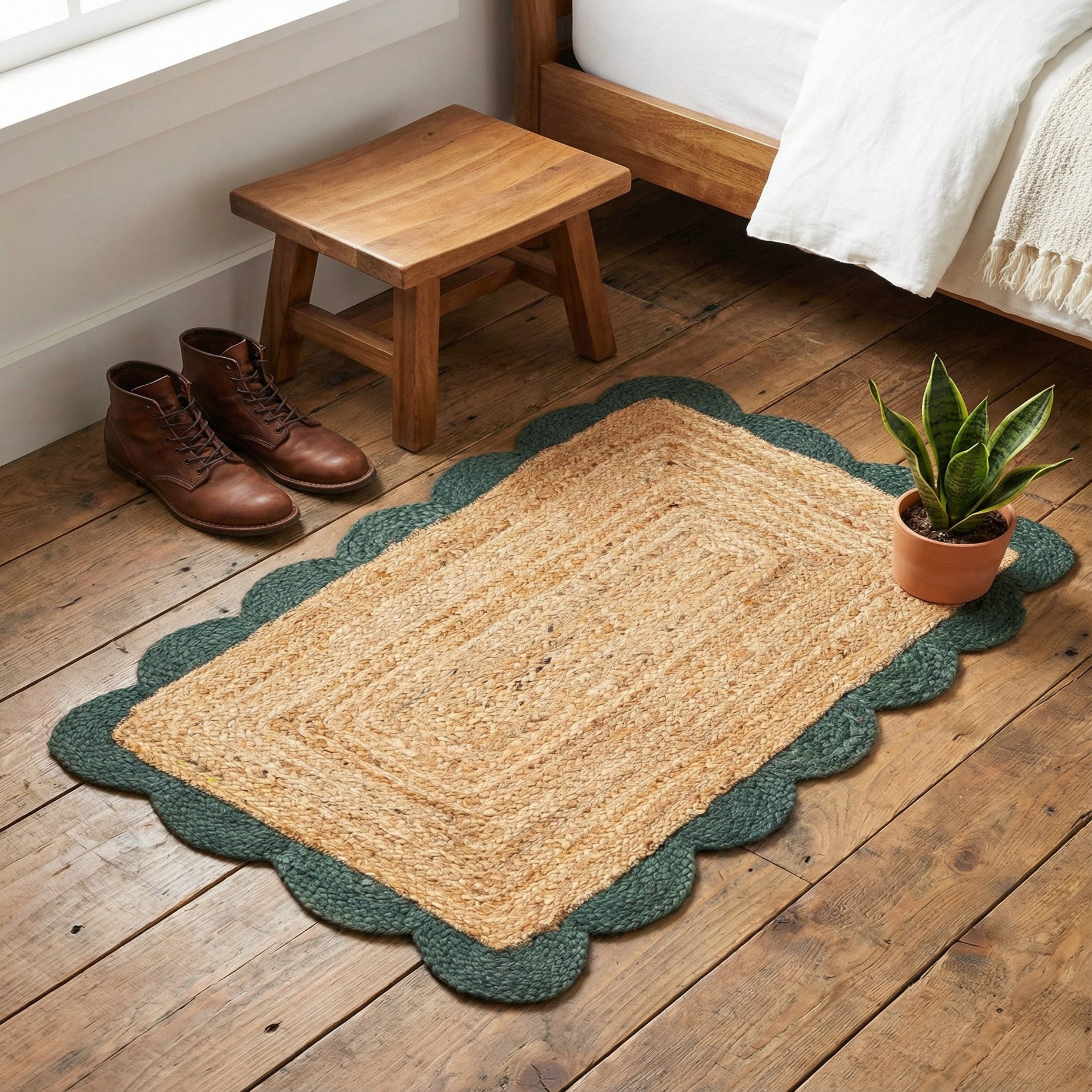 2' x 3' 1 Hand Scallop Braided Jute Rug