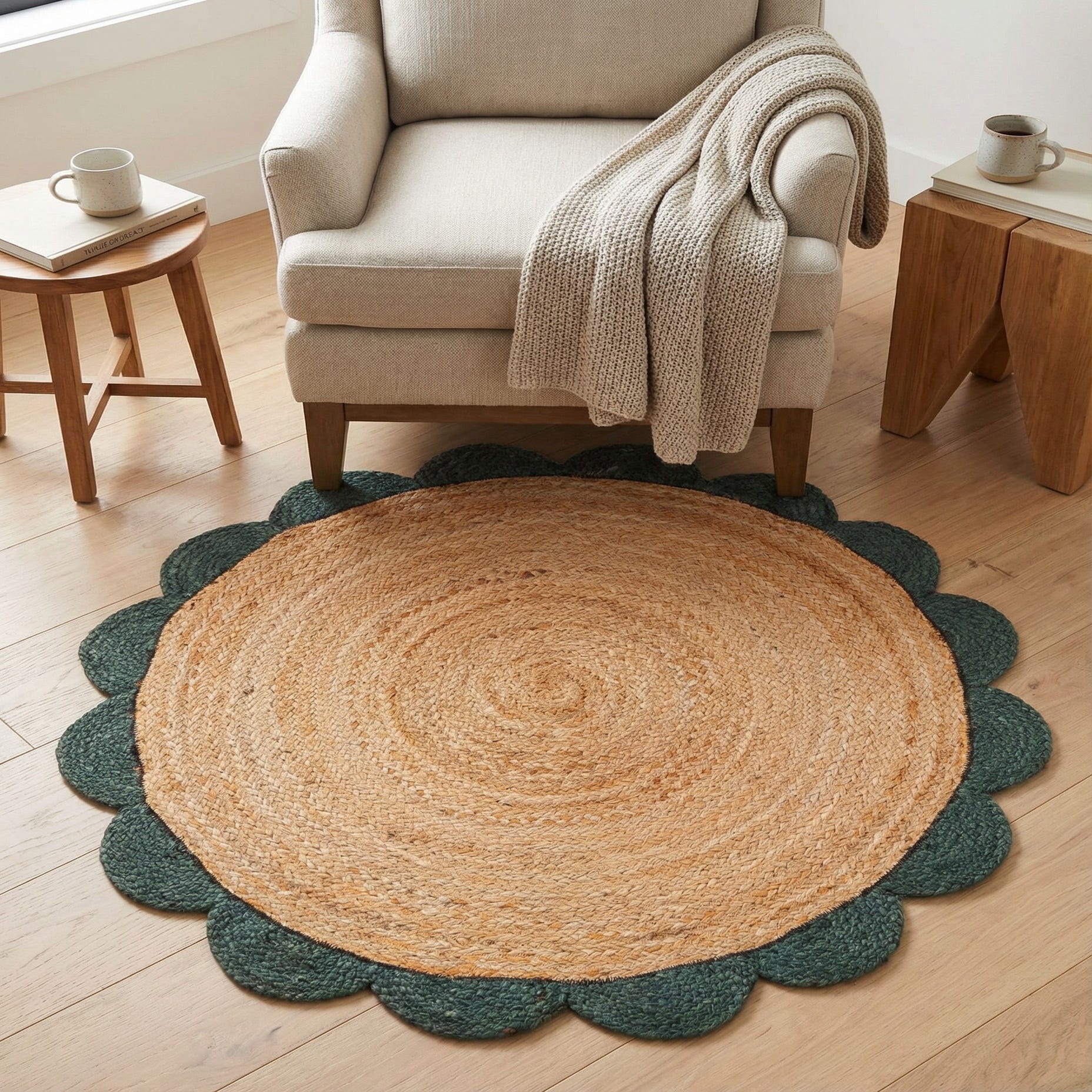 3' 1 x 3' 1 Hand Scallop Braided Jute Round Rug