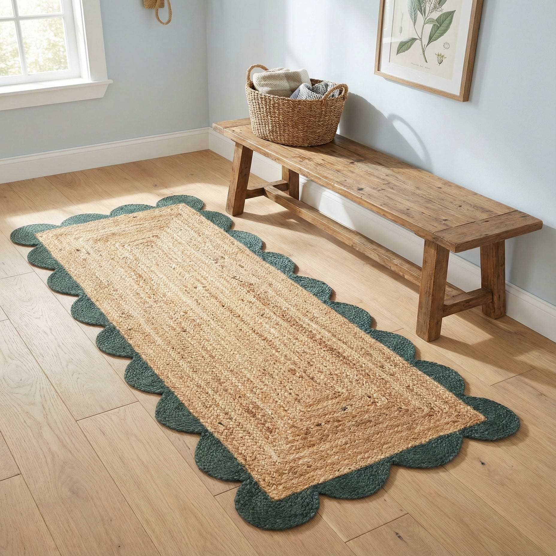 2' x 4' 1 Hand Scallop Braided Jute Runner Rug