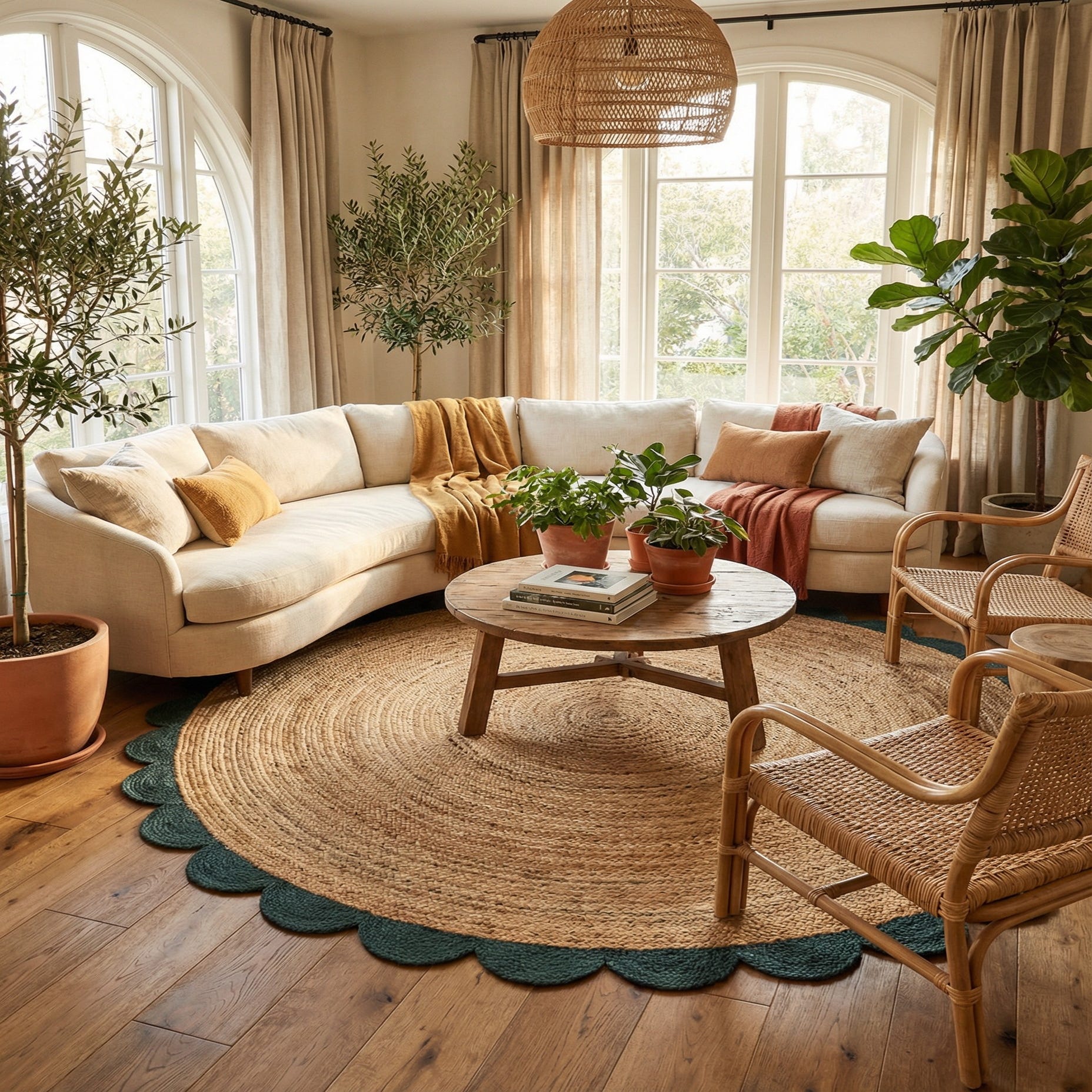 6' 1 x 6' 1 Hand Scallop Braided Jute Round Rug