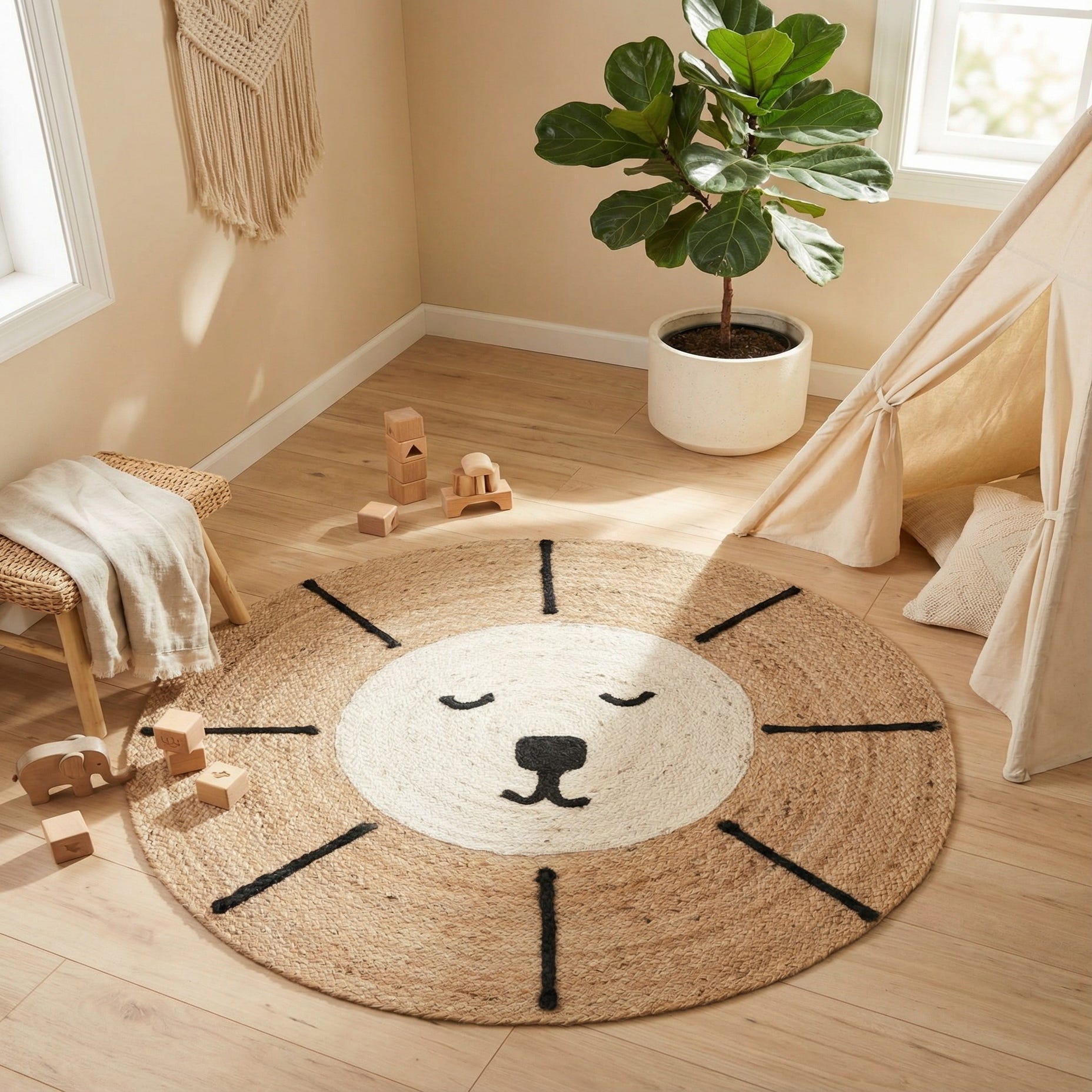 3' 1 x 3' 1 Hand Braided Kids Braided Jute Round Rug