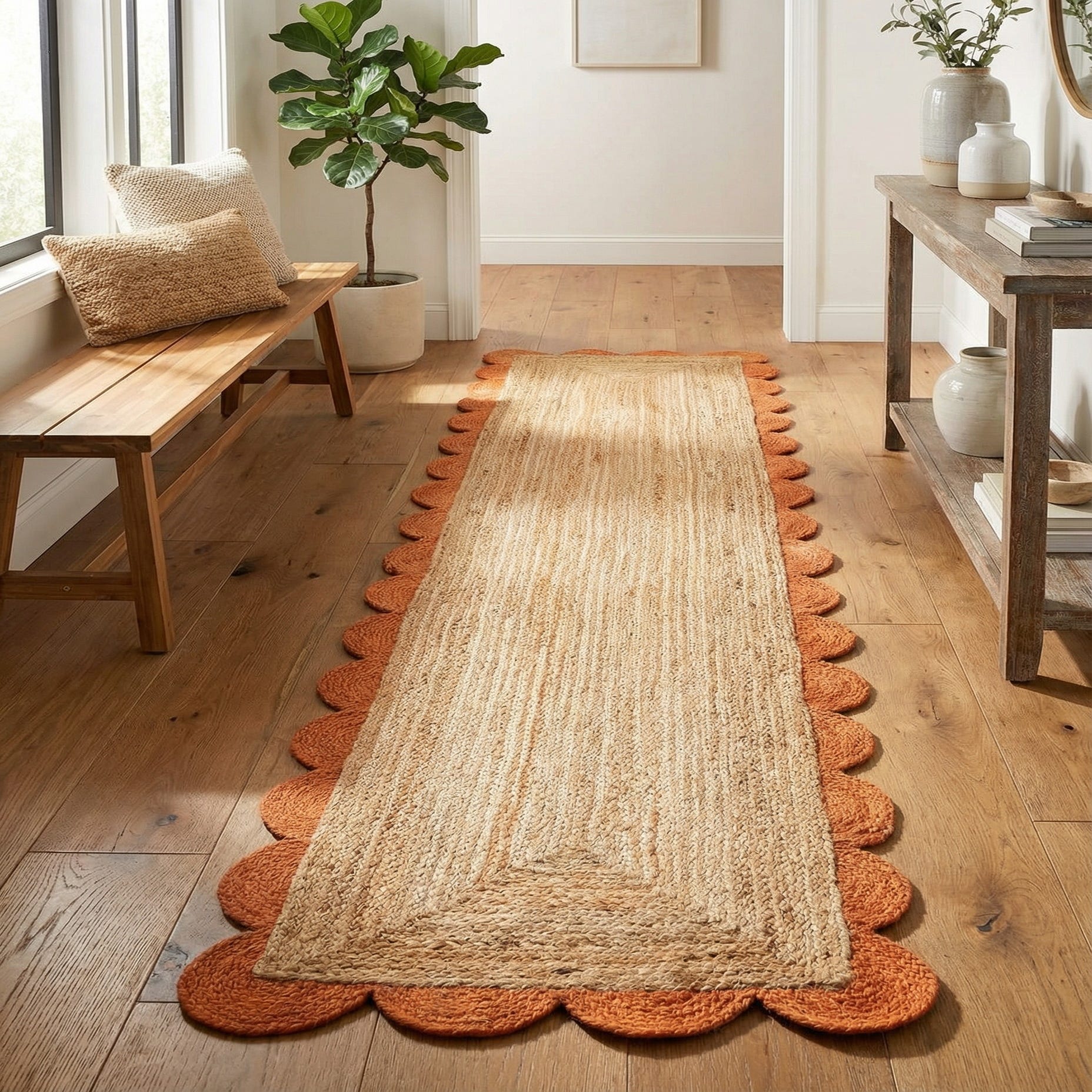 2' 7 x 10' Hand Scallop Braided Jute Runner Rug