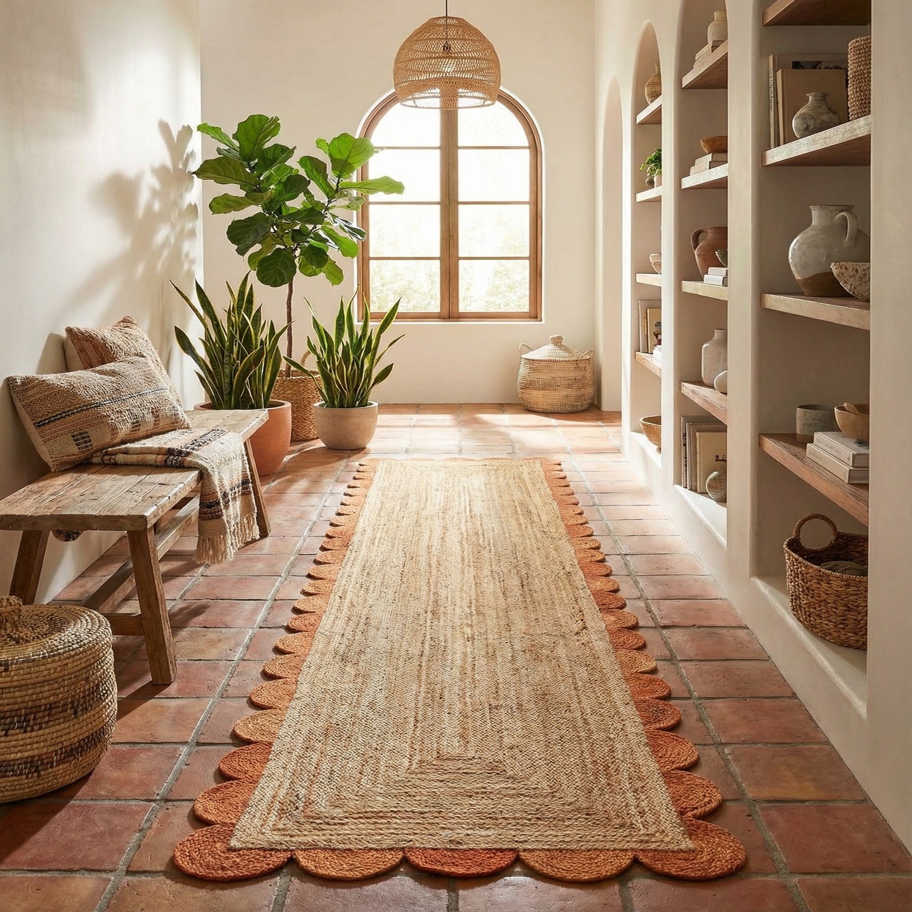 3' 3 x 14' 1 Hand Scallop Braided Jute Runner Rug