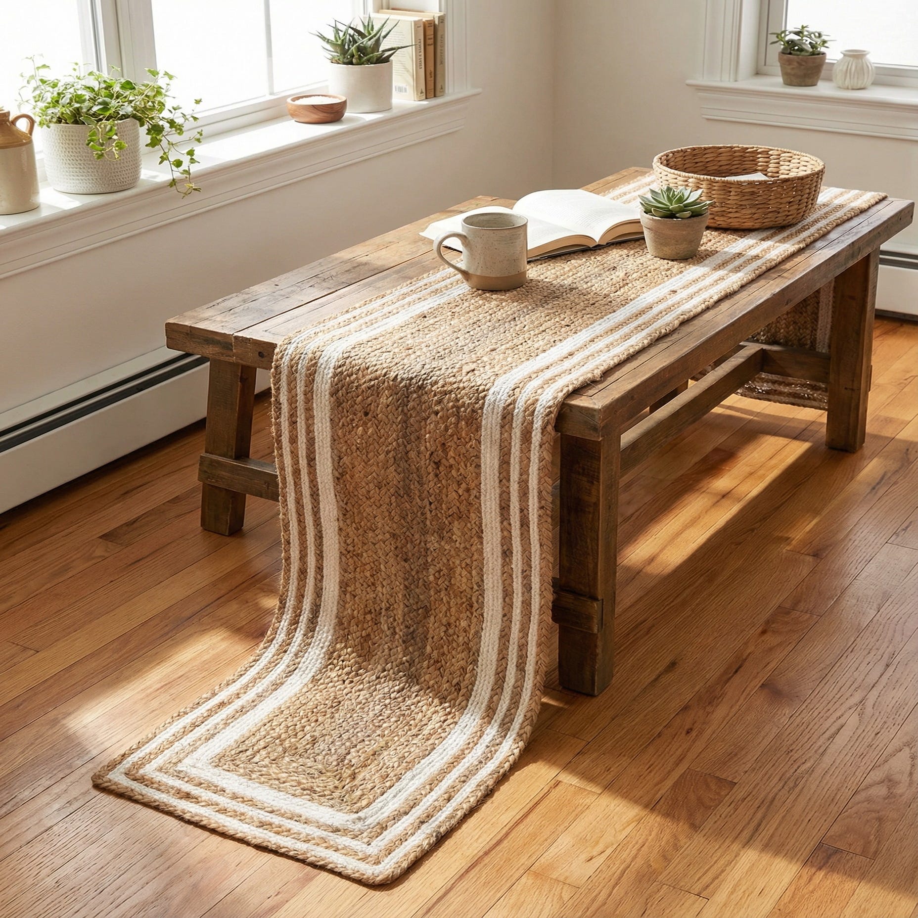 1' 2 x 10' Hand Braided Jute Table Runner Rug