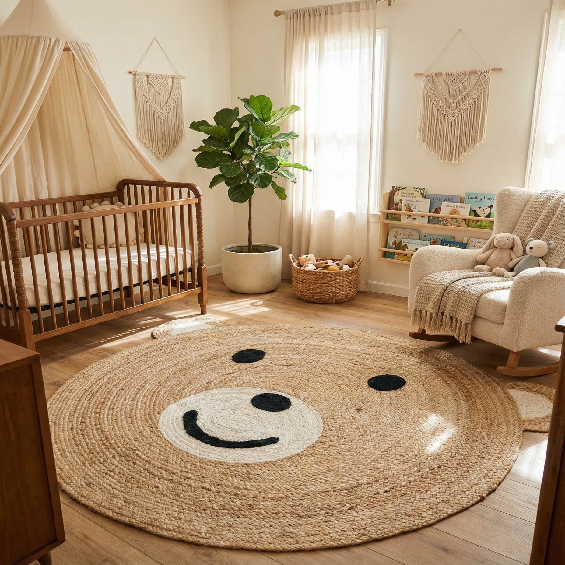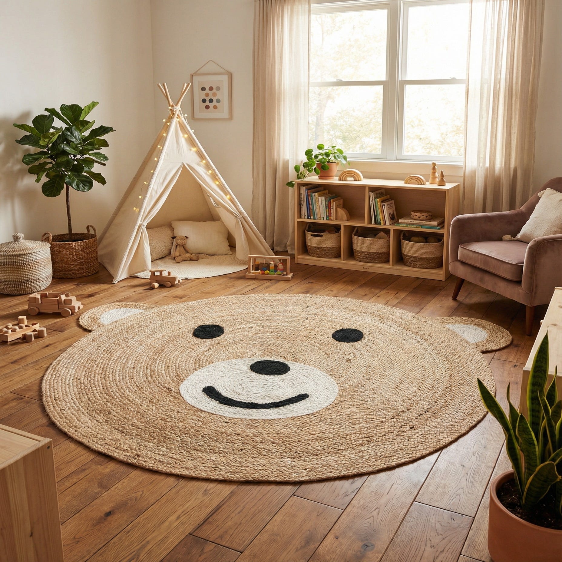 7' 10 x 7' 10 Hand Braided Kids Braided Jute Round Rug