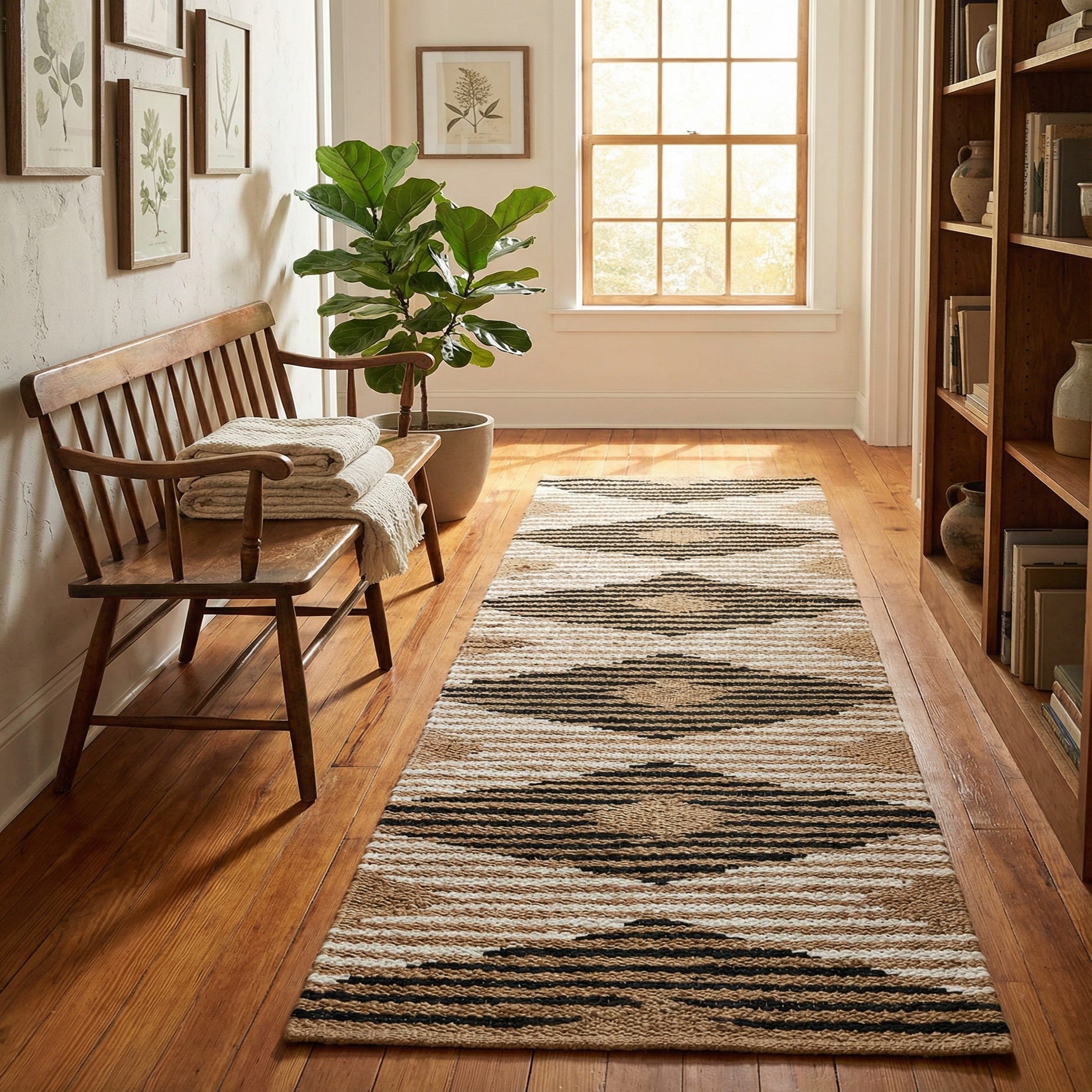 2' 7 x 12' Hand Woven Chindi Jute Runner Rug