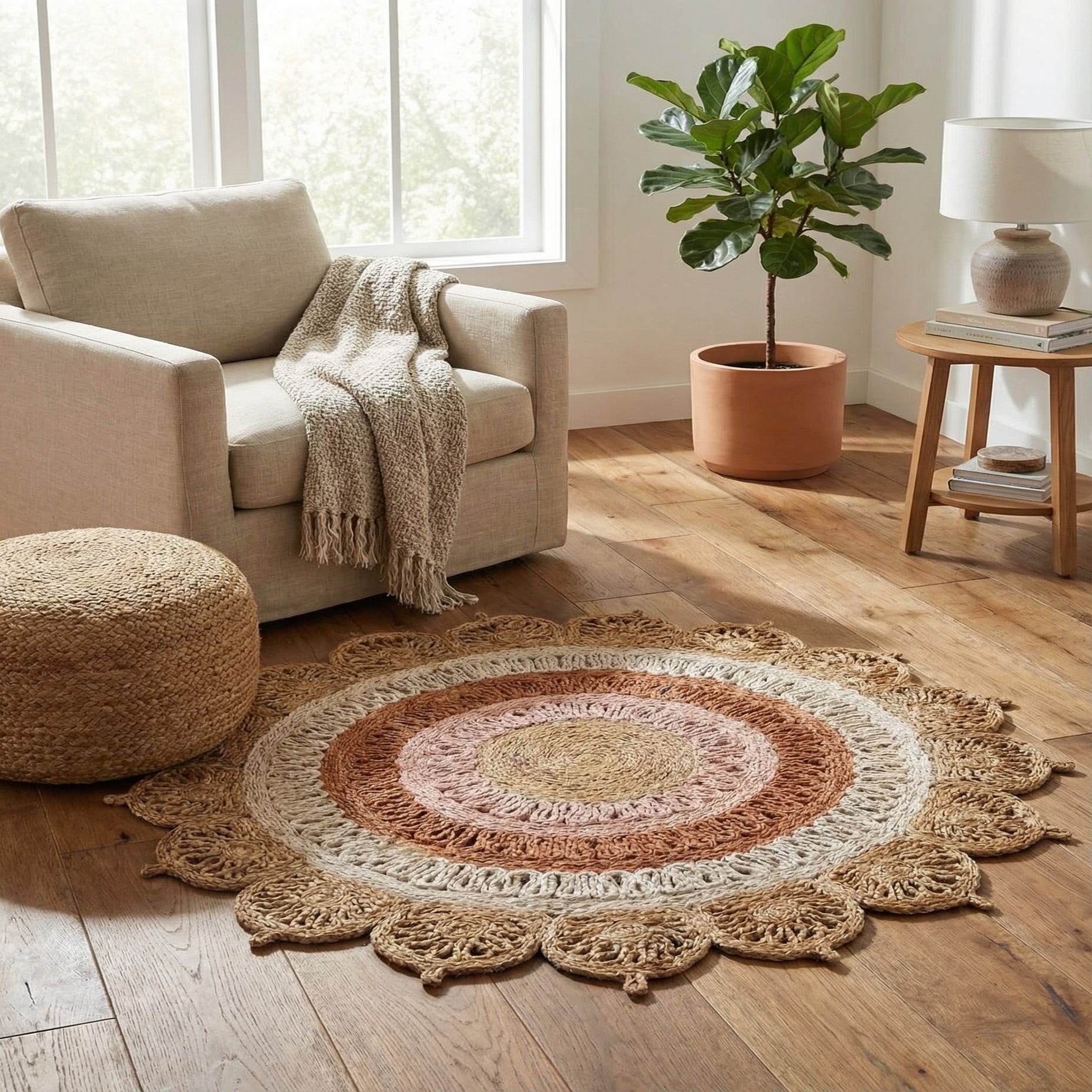 4' 1 x 4' 1 Hand Braided Jute Round Rug