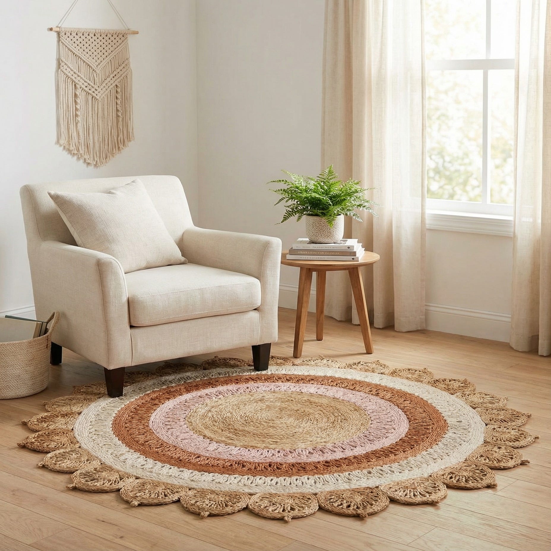 5' 1 x 5' 1 Hand Braided Jute Round Rug