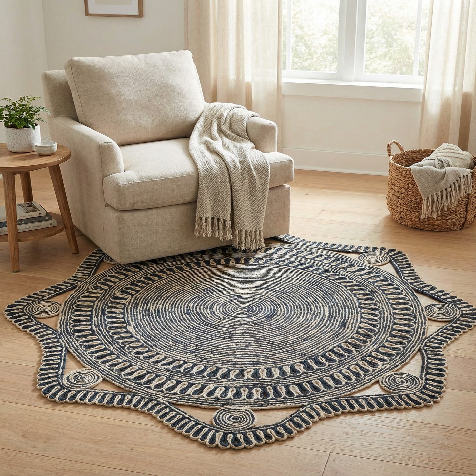 5' 1 x 5' 1 Hand Braided Jute Round Rug