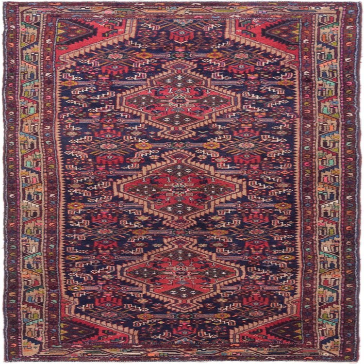 Primary color is Navy Blue. Colors in this rug include: Navy Blue, Beige, Black, Blue, Brown, Green, Ivory, Olive, Orange, Red, Pink.
