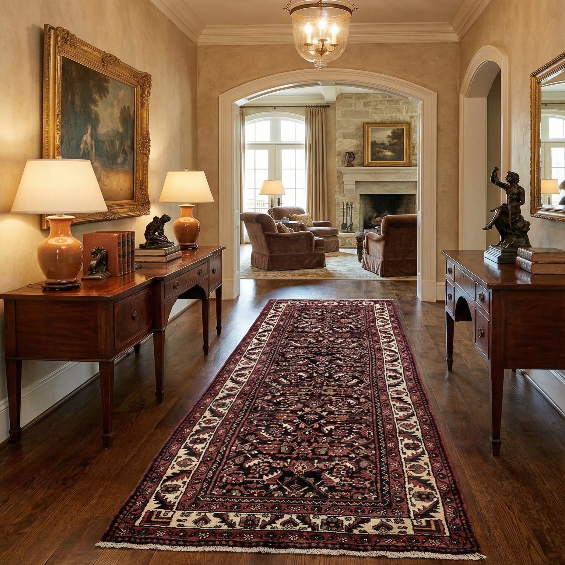 3' 7 x 10' 3 Hand Knotted Hossainabad Persian Wool Runner Rug