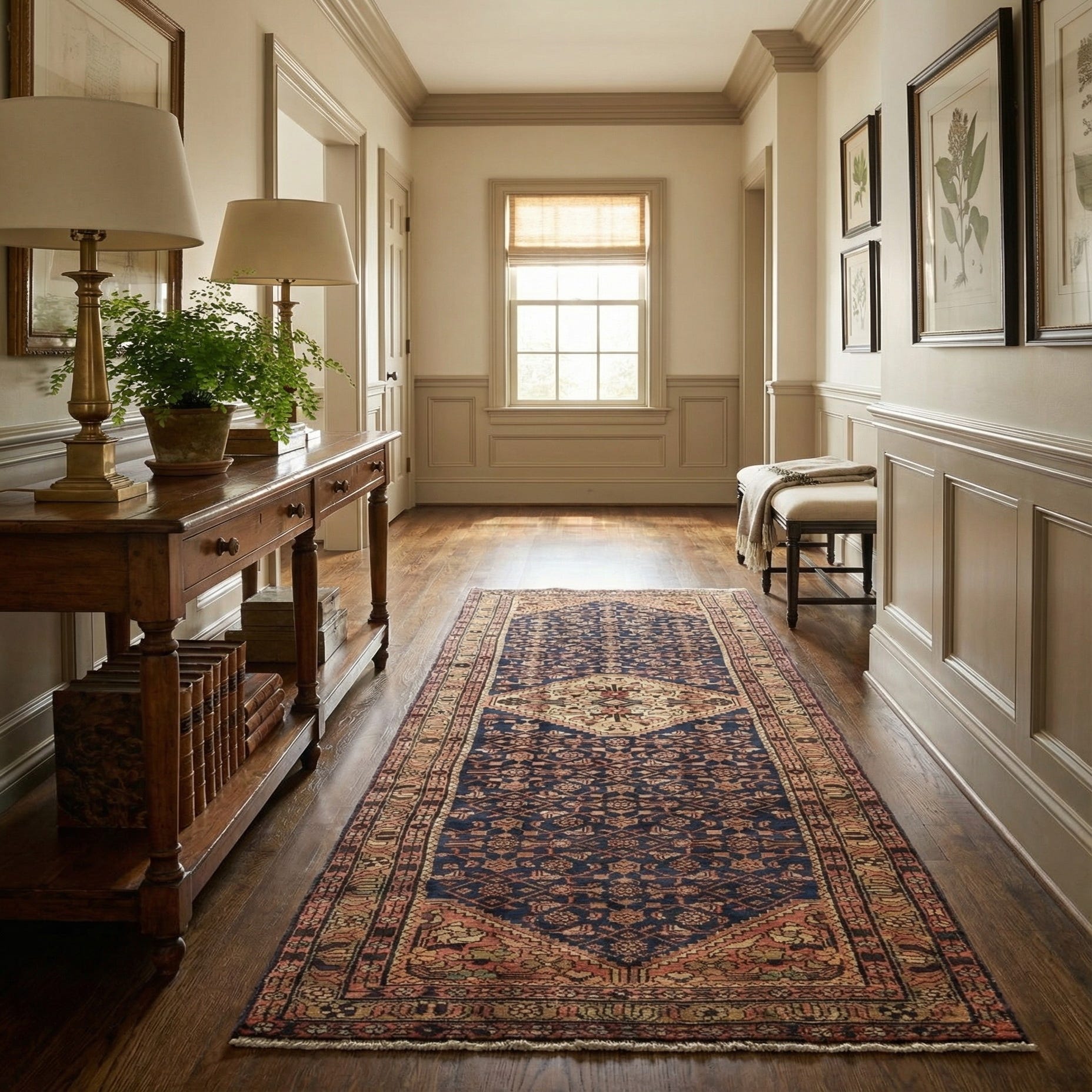 3' 7 x 10' 3 Hand Knotted Hossainabad Persian Wool Runner Rug