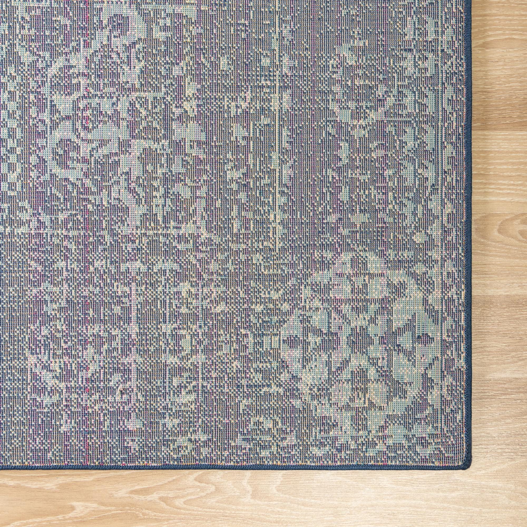 Primary color is Navy Blue. Colors in this rug include: Navy Blue, Blue, Ivory.