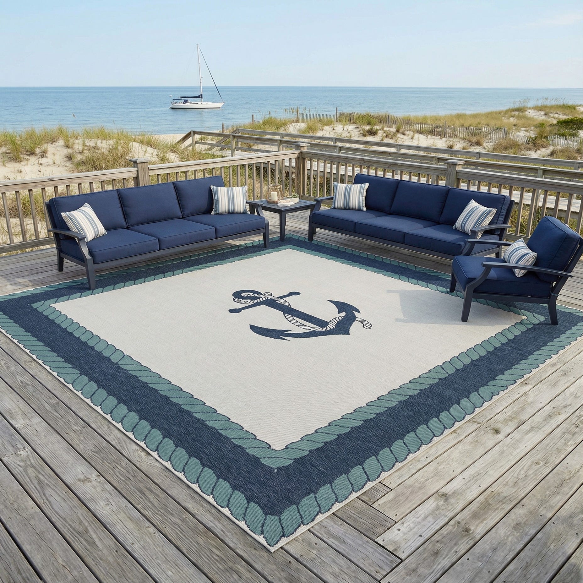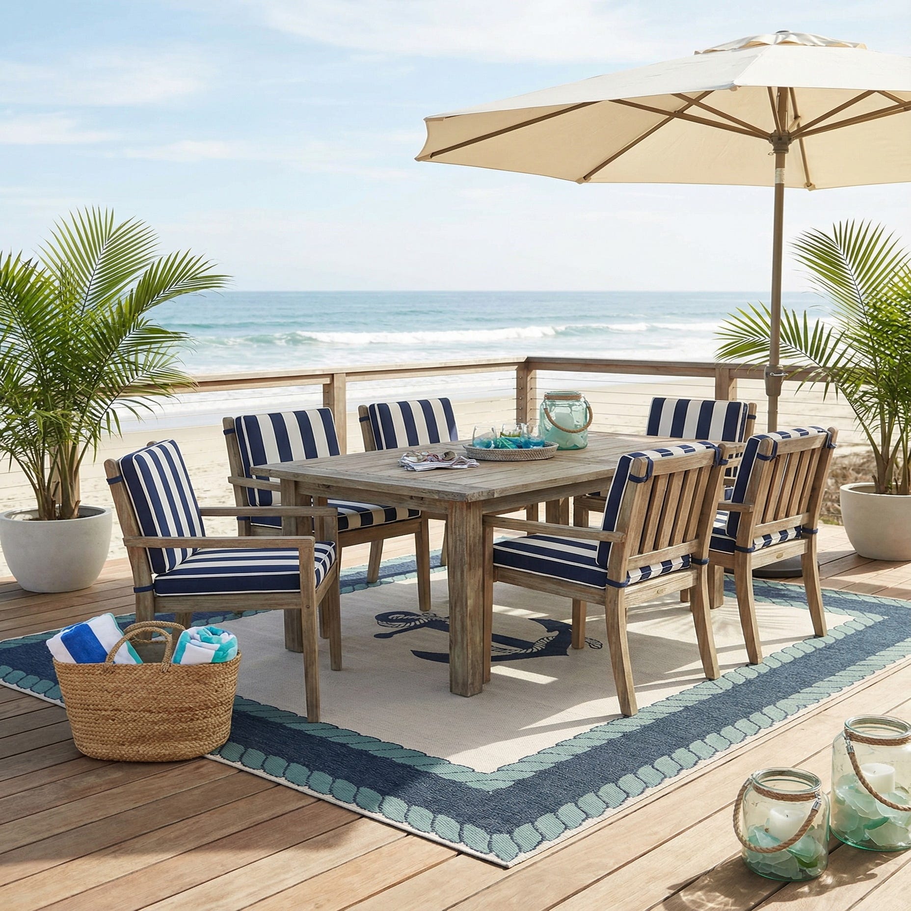 10' x 10' Washable Coastal Indoor / Outdoor Square Rug