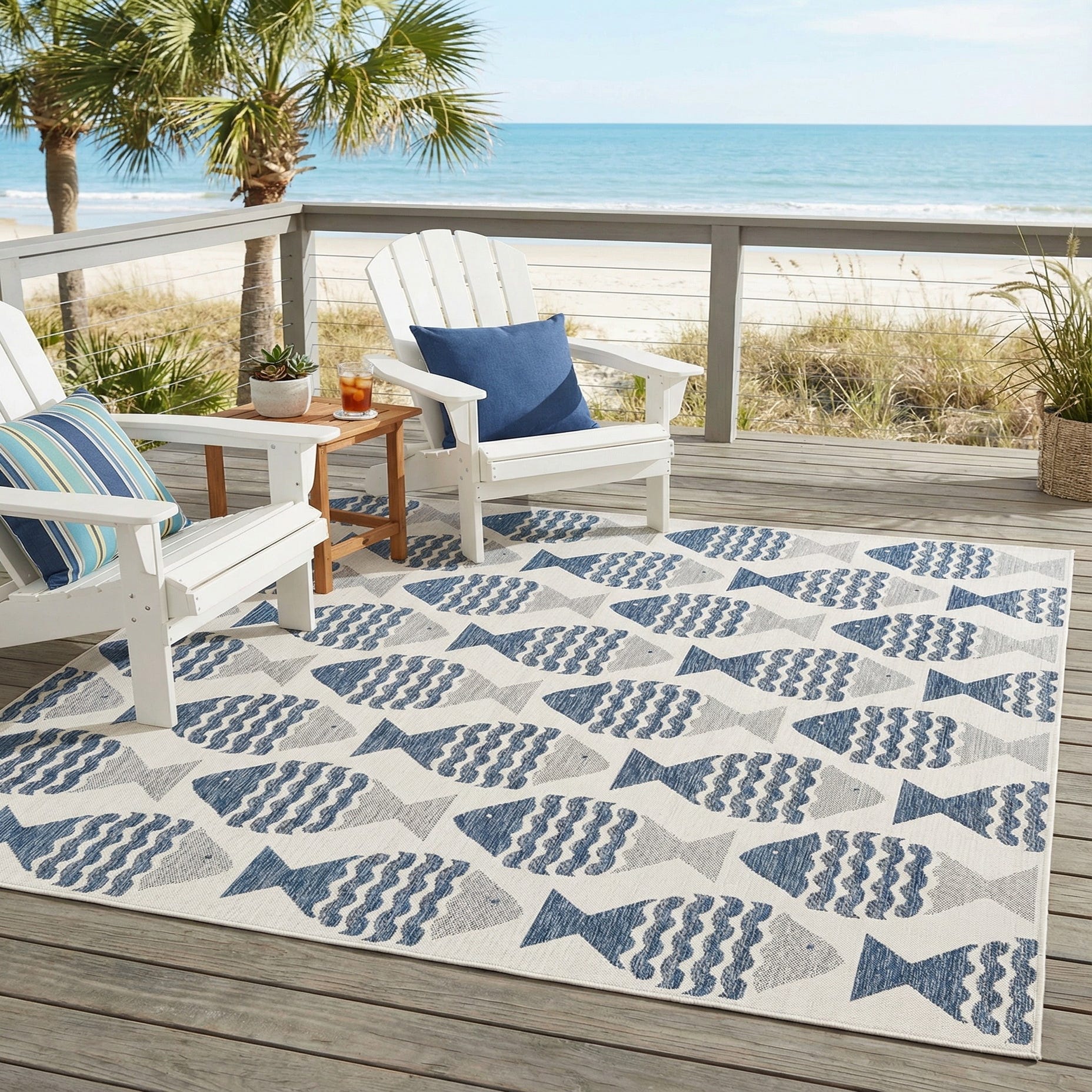 10' x 10' Washable Coastal Indoor / Outdoor Square Rug