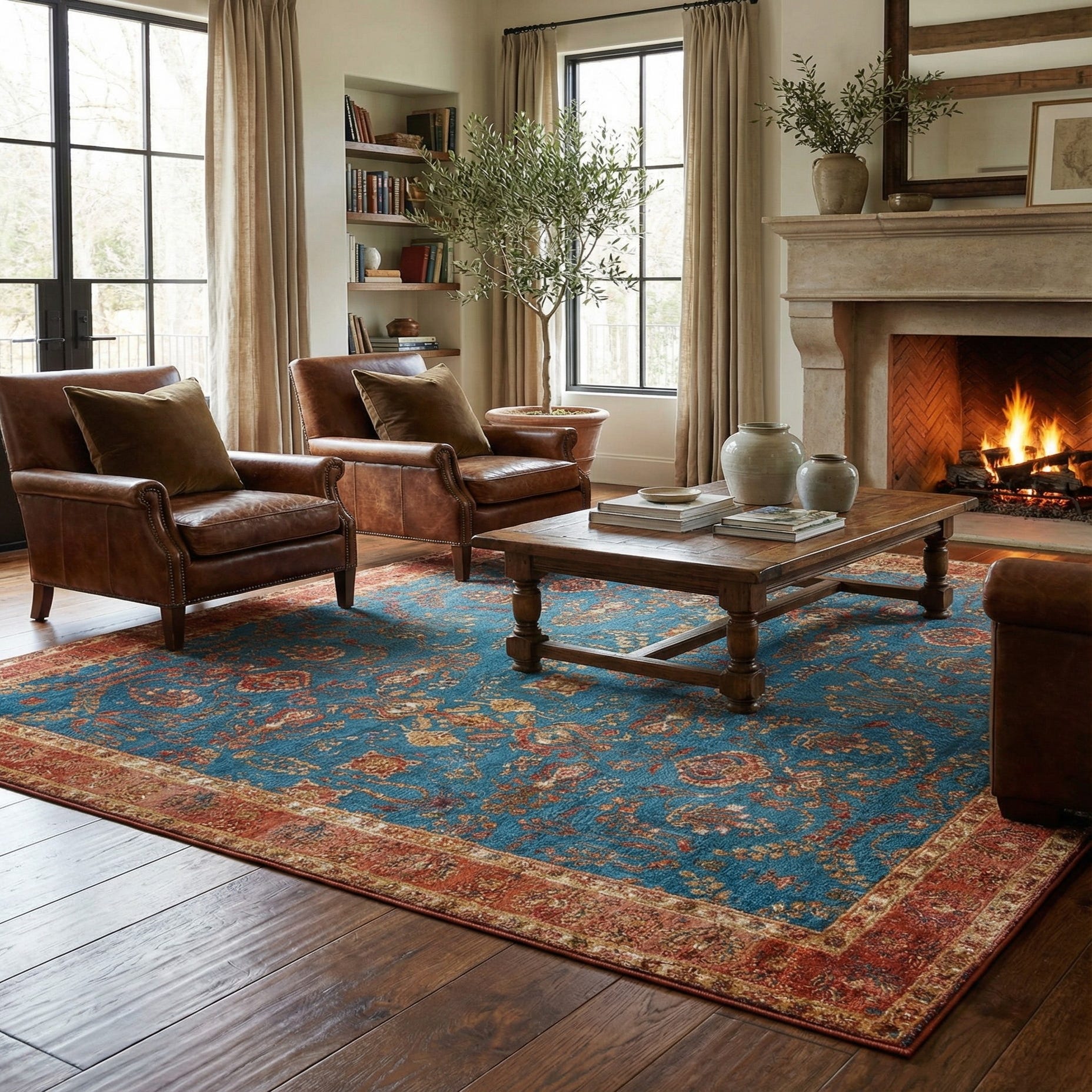 10' x 10' Washable Traditional Indoor / Outdoor Square Rug