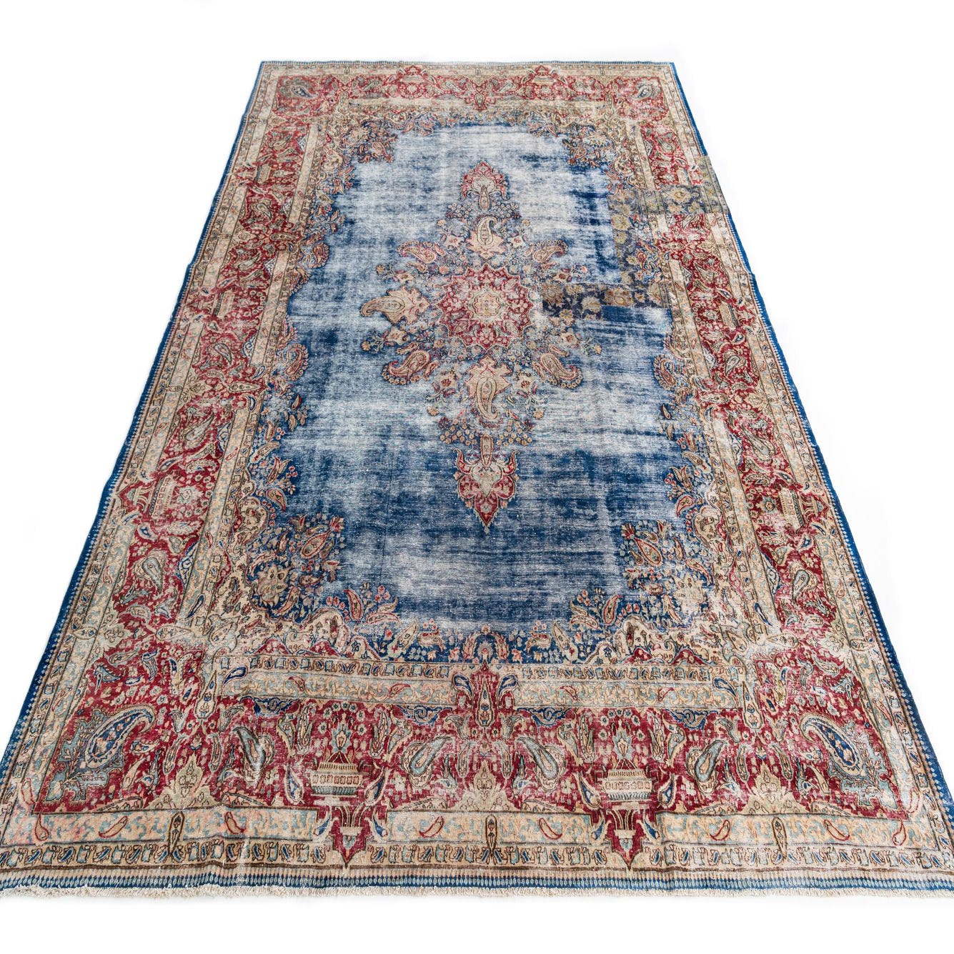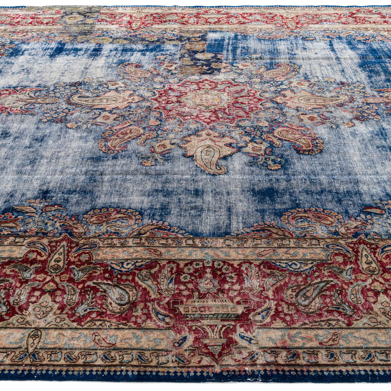 This Persian Ultra Vintage rug is an antique Persian Rug that has been washed, over-dyed, and then shaved down to a low pile. Look at the detail pictures to fully appreciate the uniqueness of this piece.