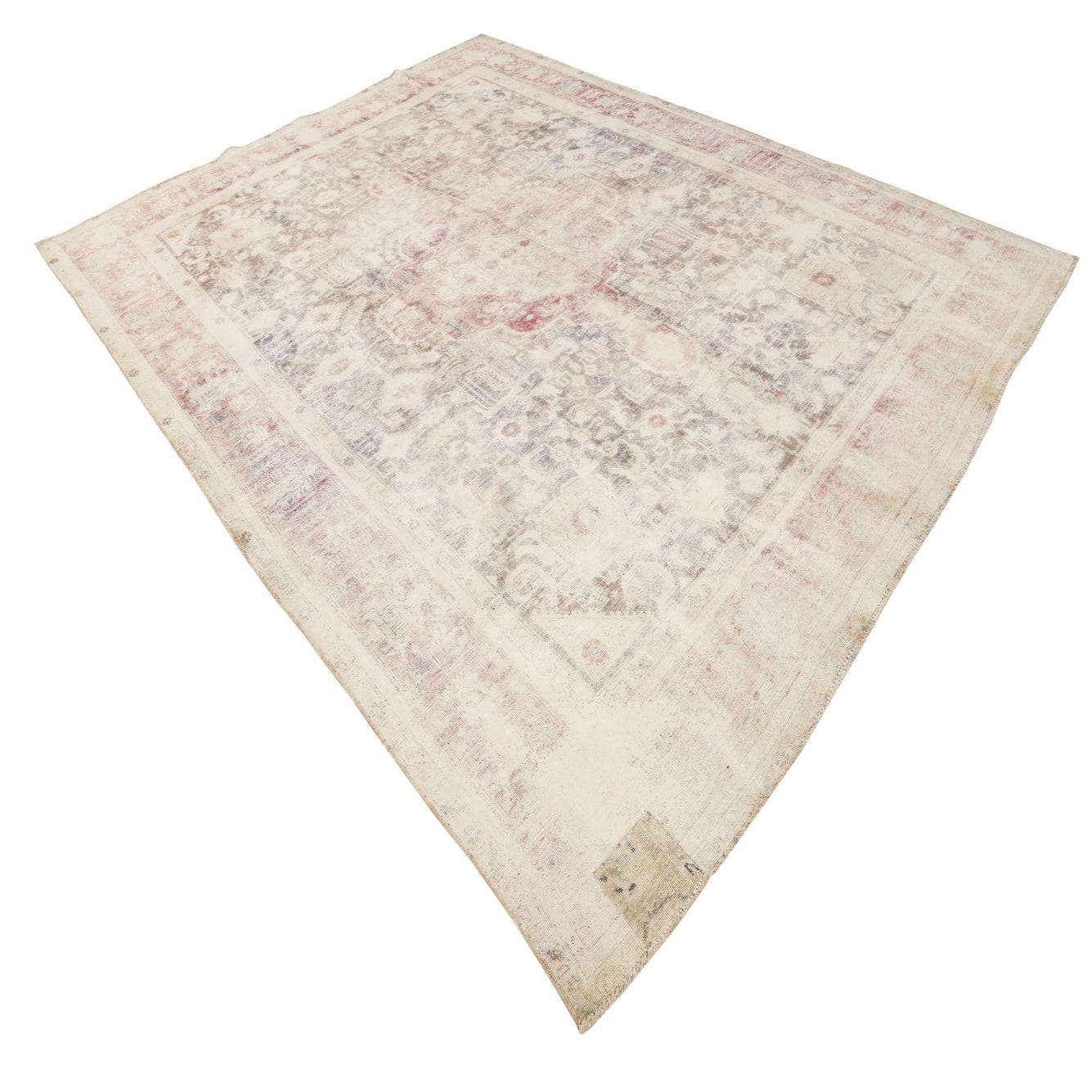 This Persian Ultra Vintage rug is an antique Persian Rug that has been washed, over-dyed, and then shaved down to a low pile. Look at the detail pictures to fully appreciate the uniqueness of this piece.
