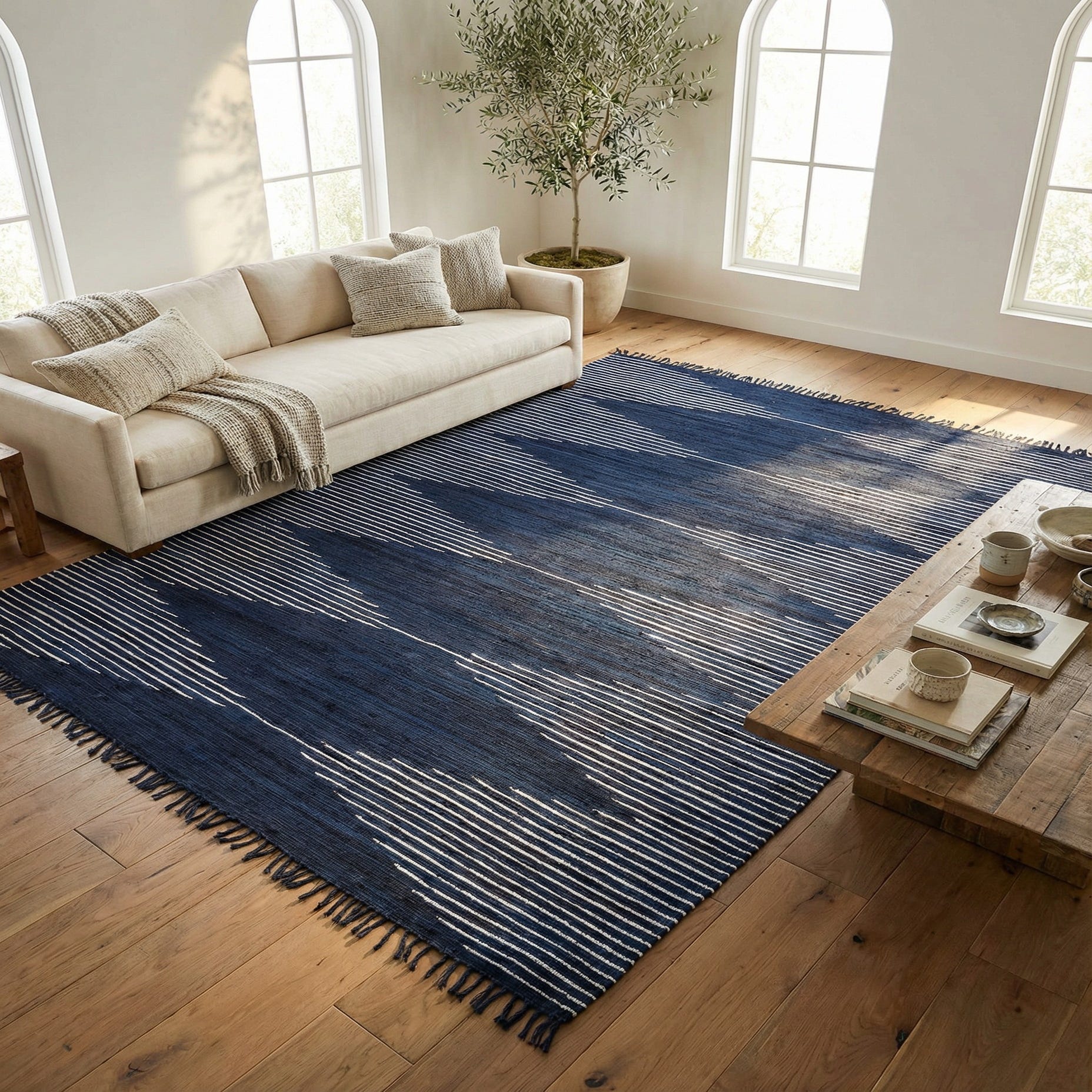 Primary color is Navy Blue. Colors in this rug include: Navy Blue, Ivory.