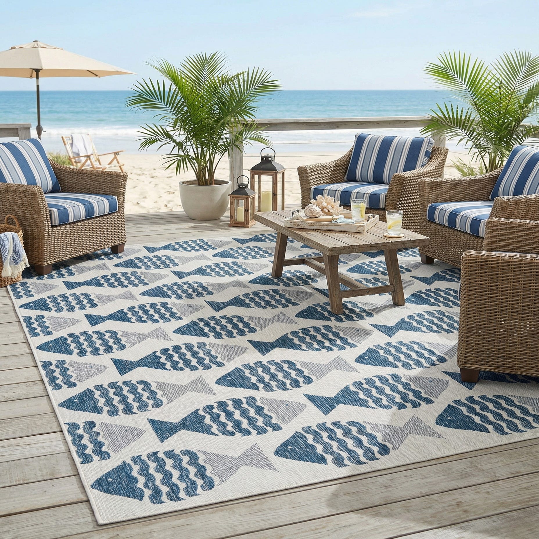 10' x 14' Washable Coastal Indoor / Outdoor Rug