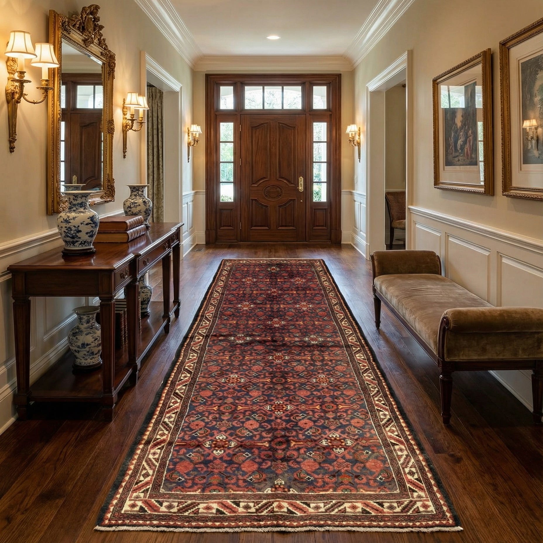 3' 9 x 10' 7 Hand Knotted Hossainabad Persian Wool Runner Rug