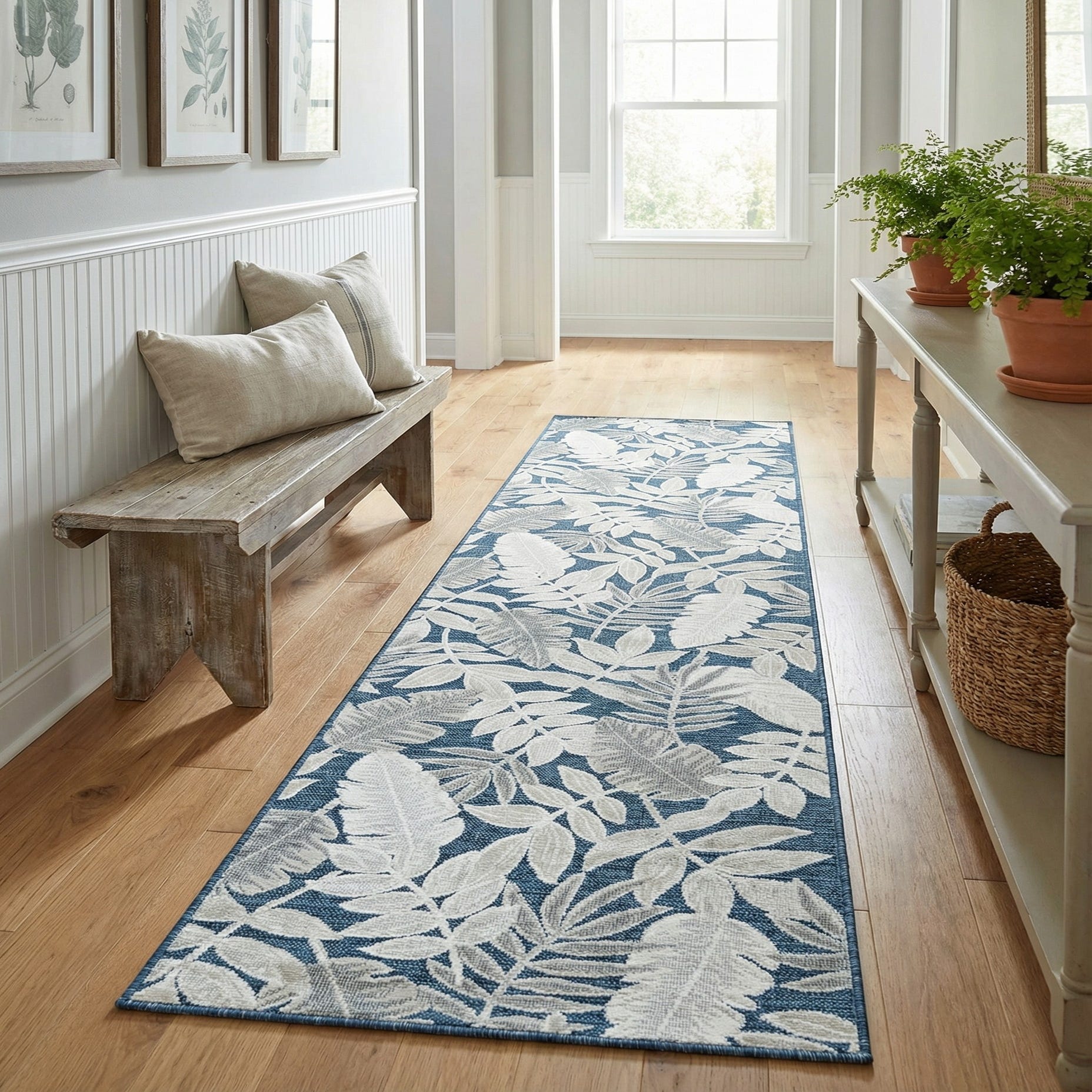 2' 7 x 12' Washable Botanical Indoor / Outdoor Runner Rug