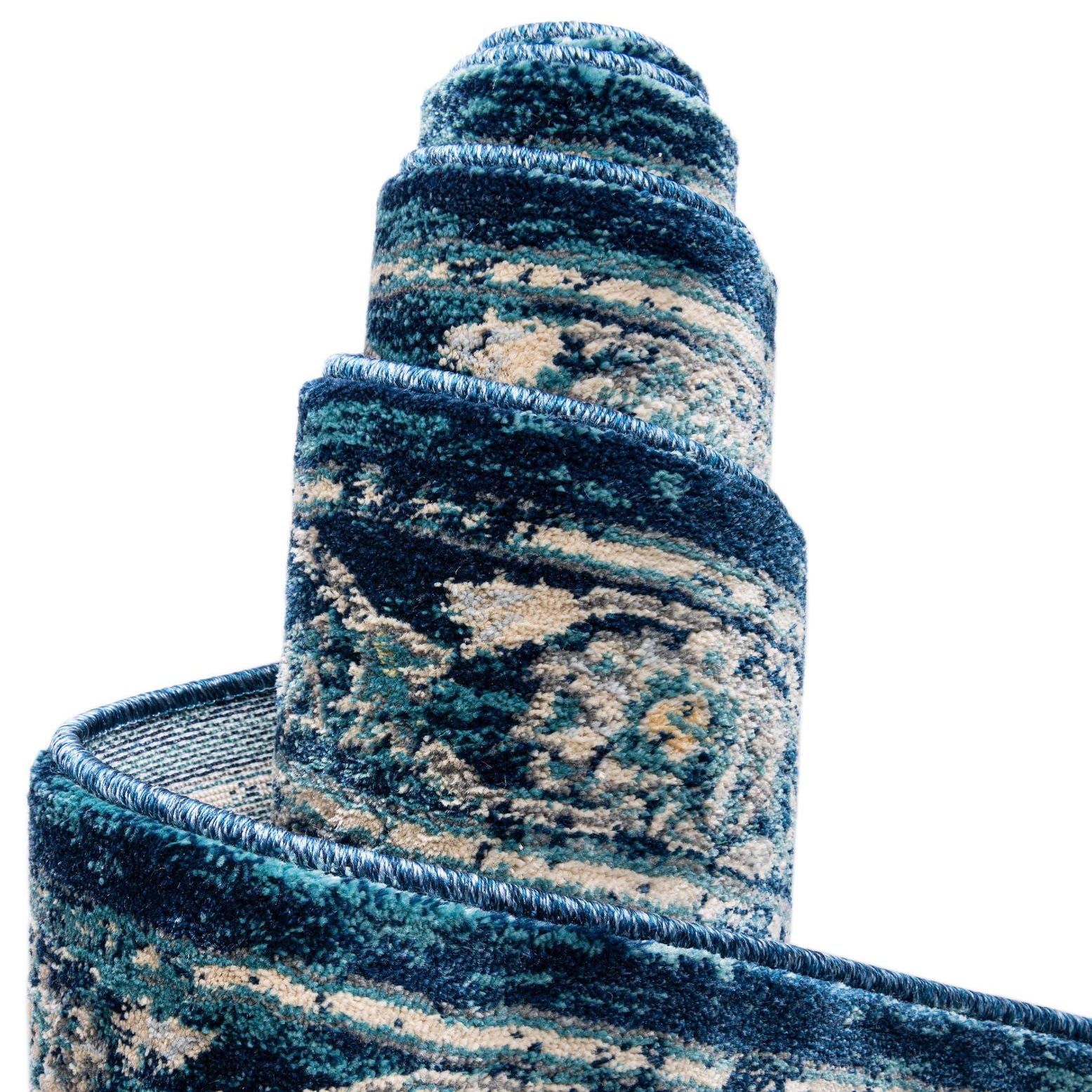 Primary color is Navy Blue. Colors in this rug include: Navy Blue, Beige, Blue, Cream, Gray, Yellow.