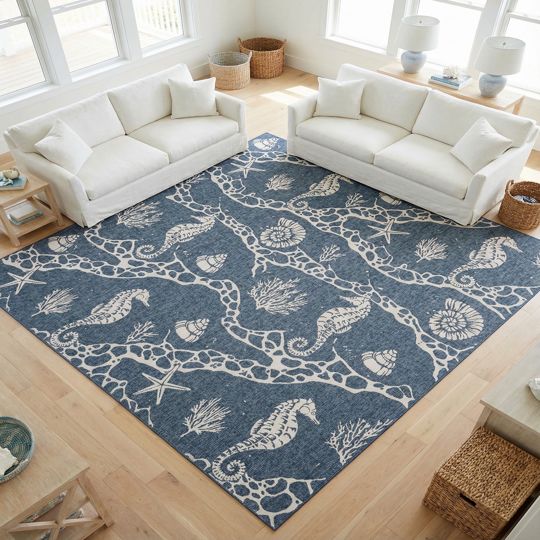 12' x 12' Washable Coastal Indoor / Outdoor Square Rug