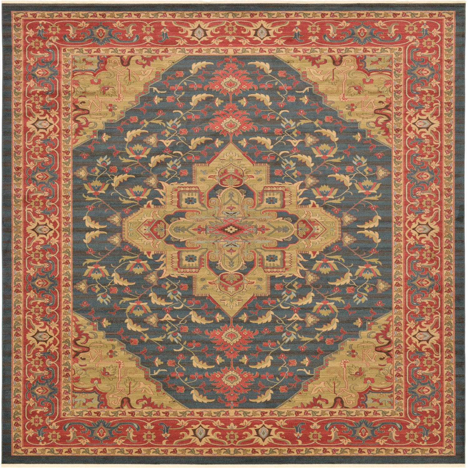 Primary color is Navy Blue. Colors in this rug include: Navy Blue, Blue, Gray, Light Blue, Light Brown, Red, Brown.