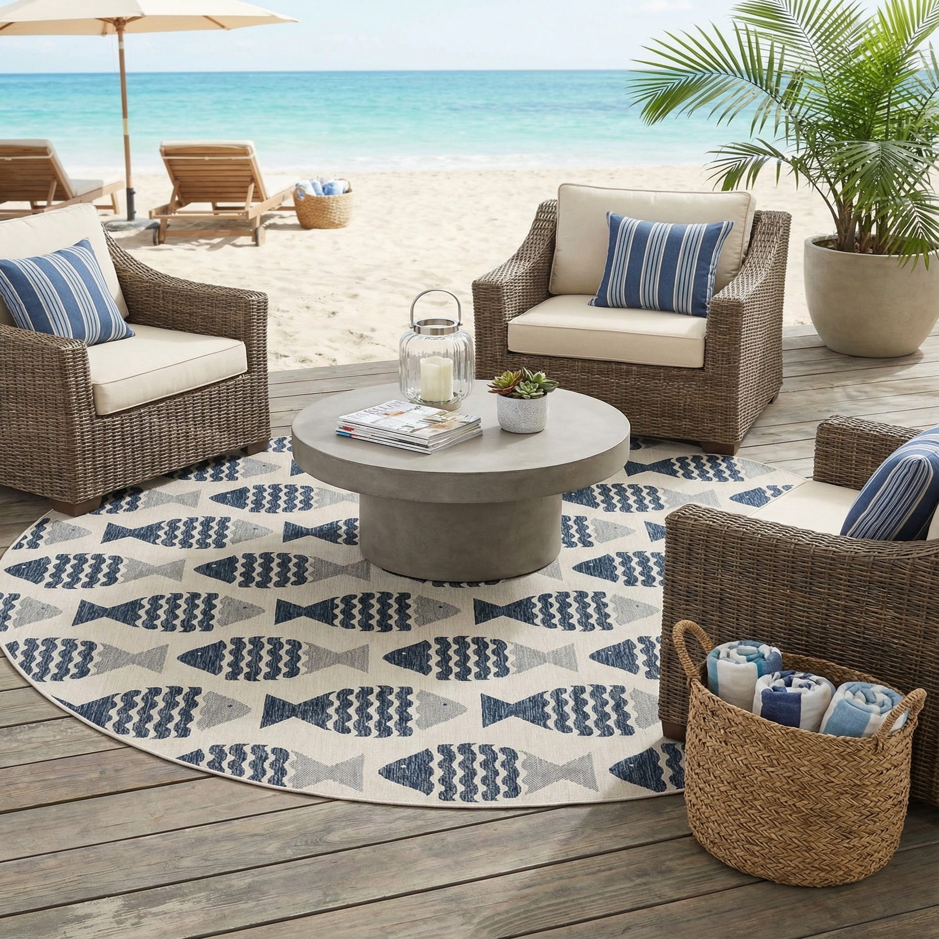 13' x 13' Washable Coastal Indoor / Outdoor Round Rug