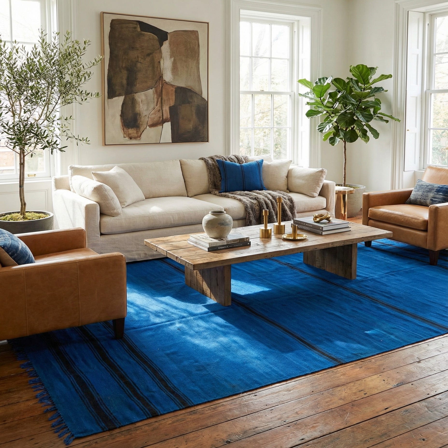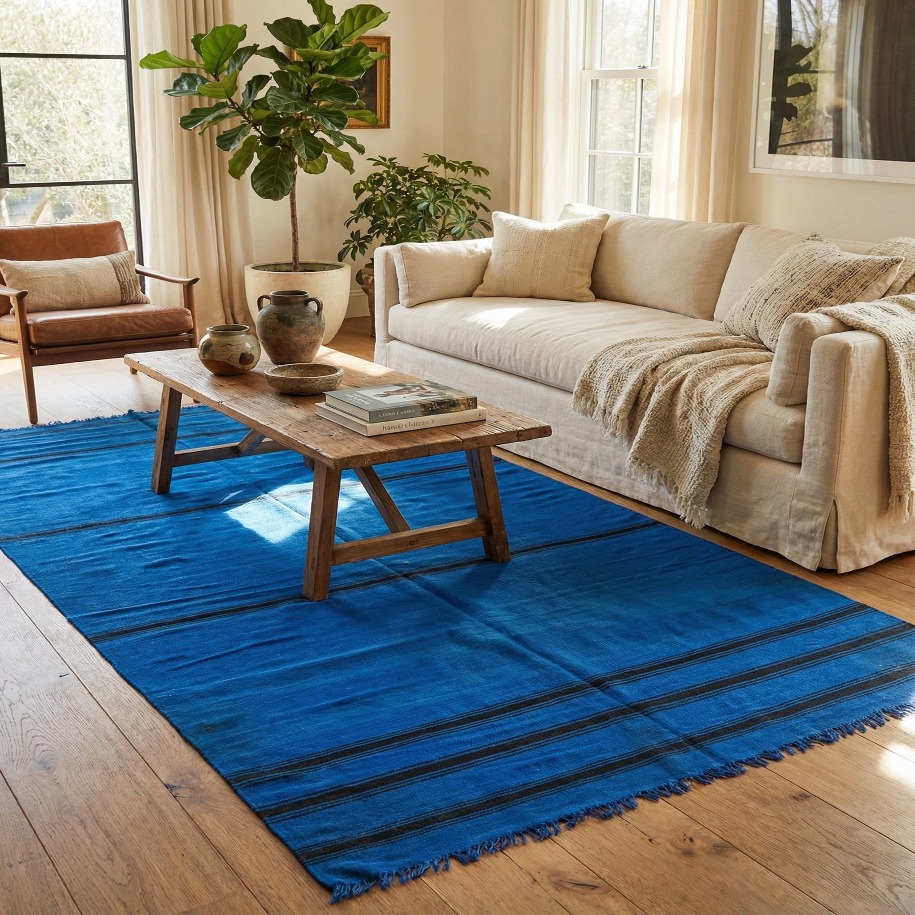 Primary color is Navy Blue. Colors in this rug include: Navy Blue, Black.
