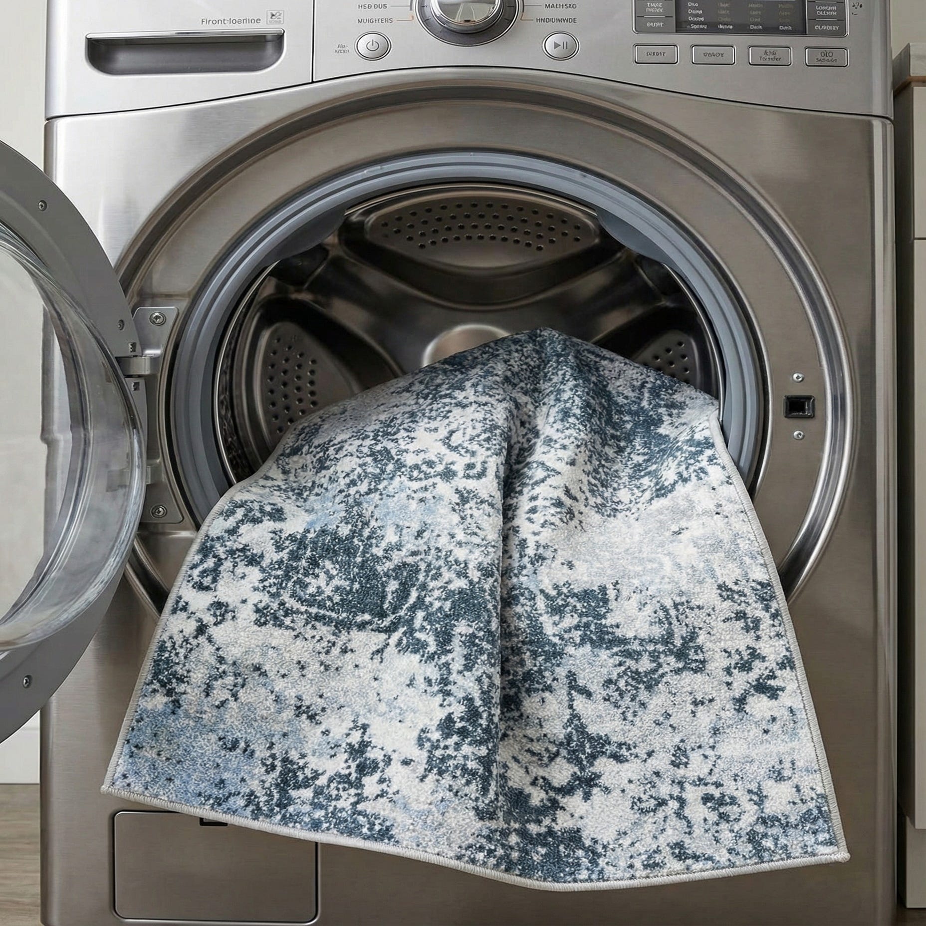 Primary color is Navy Blue. Colors in this rug include: Navy Blue, Gray, Ivory, Blue.