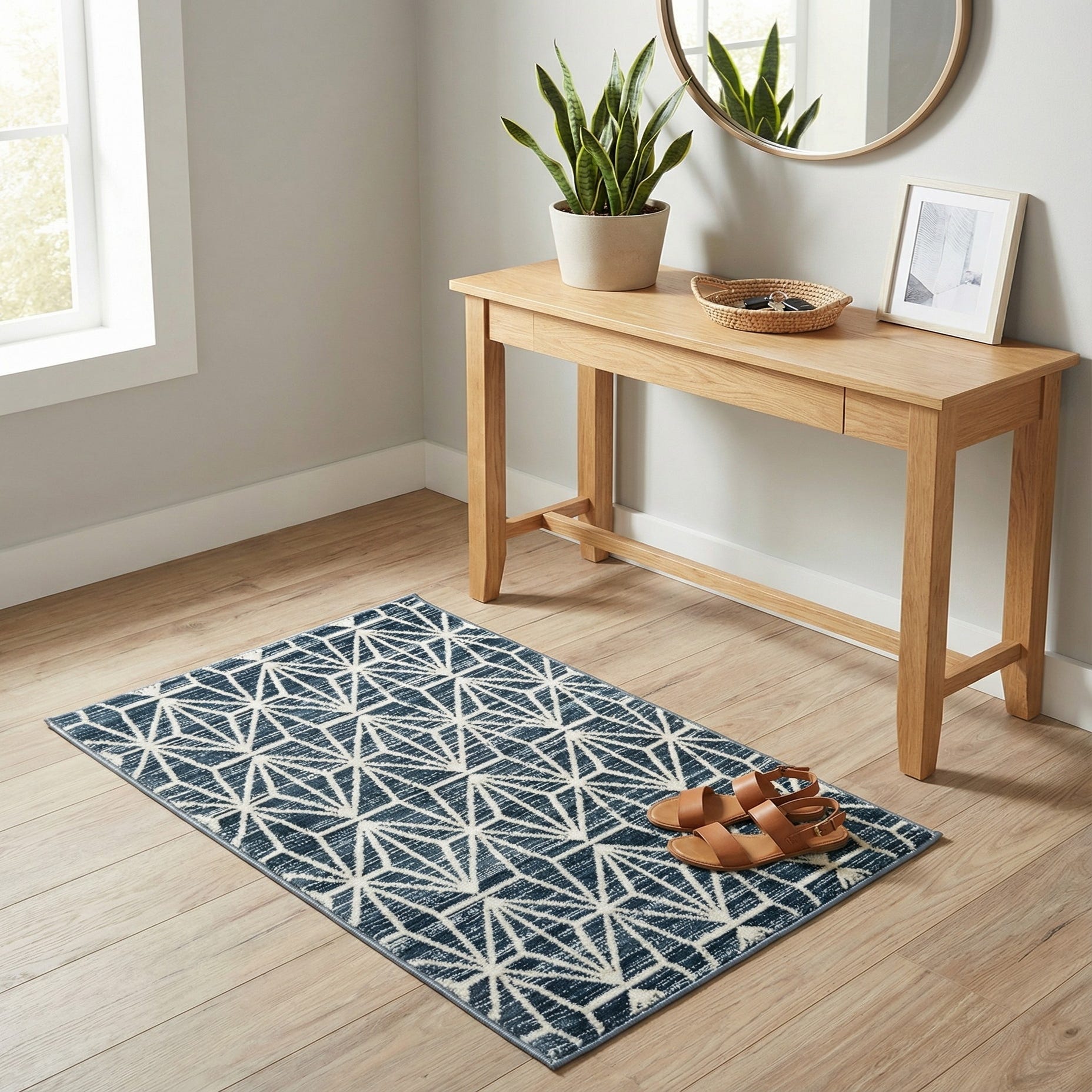 Primary color is Navy Blue. Colors in this rug include: Navy Blue, Ivory.