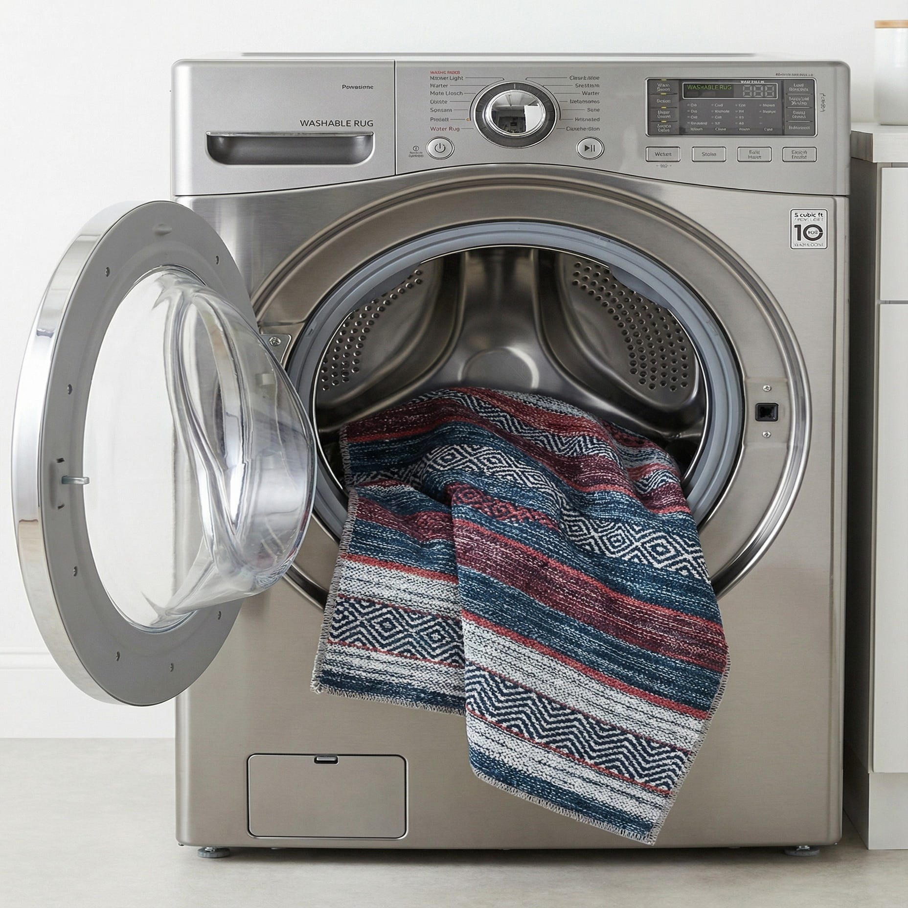 Primary color is Navy Blue. Colors in this rug include: Navy Blue, Blue, Ivory, Light Blue, Red, Pink, Puce.