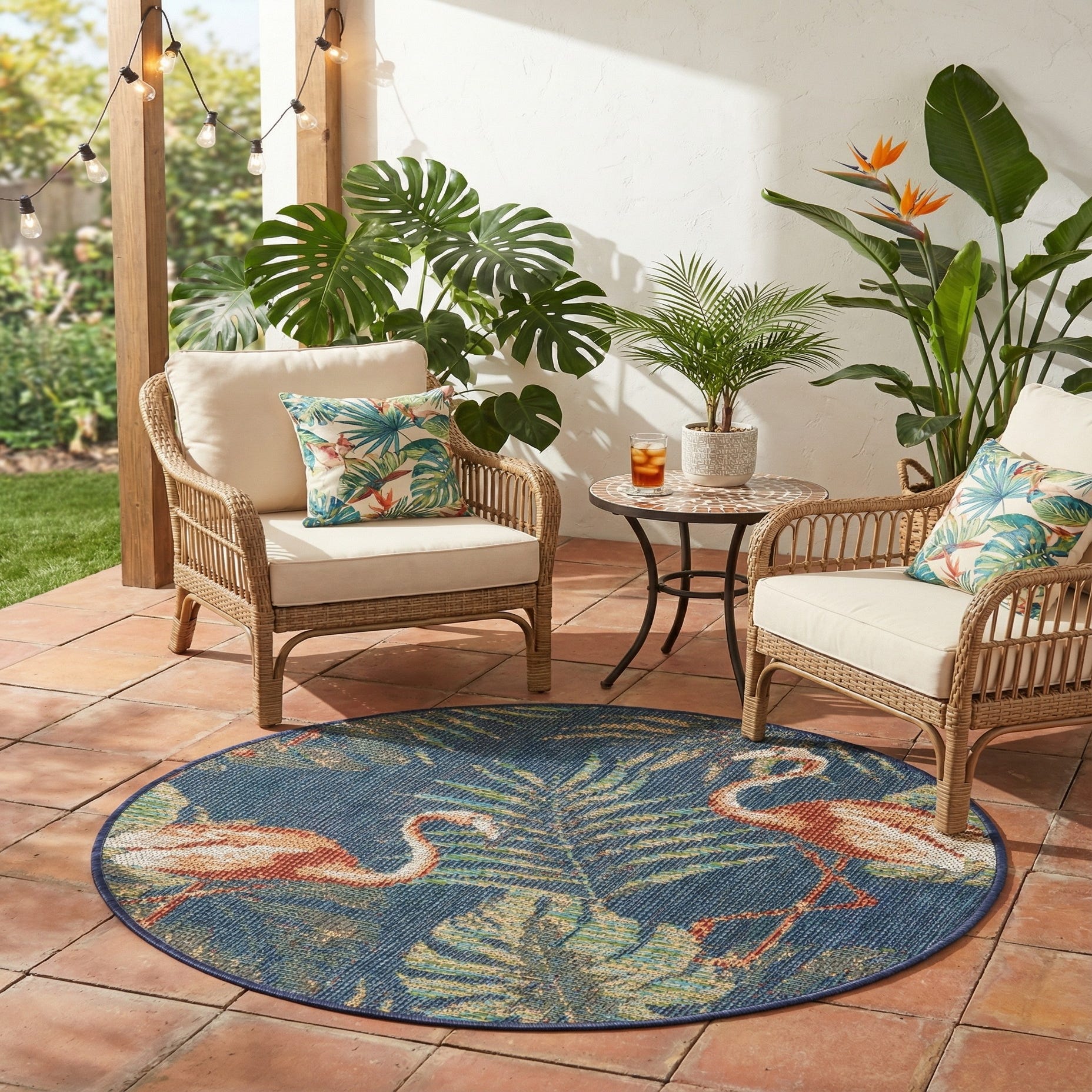 Primary image 3' 3 x 3' 3  Washable Baja Indoor / Outdoor Round Rug