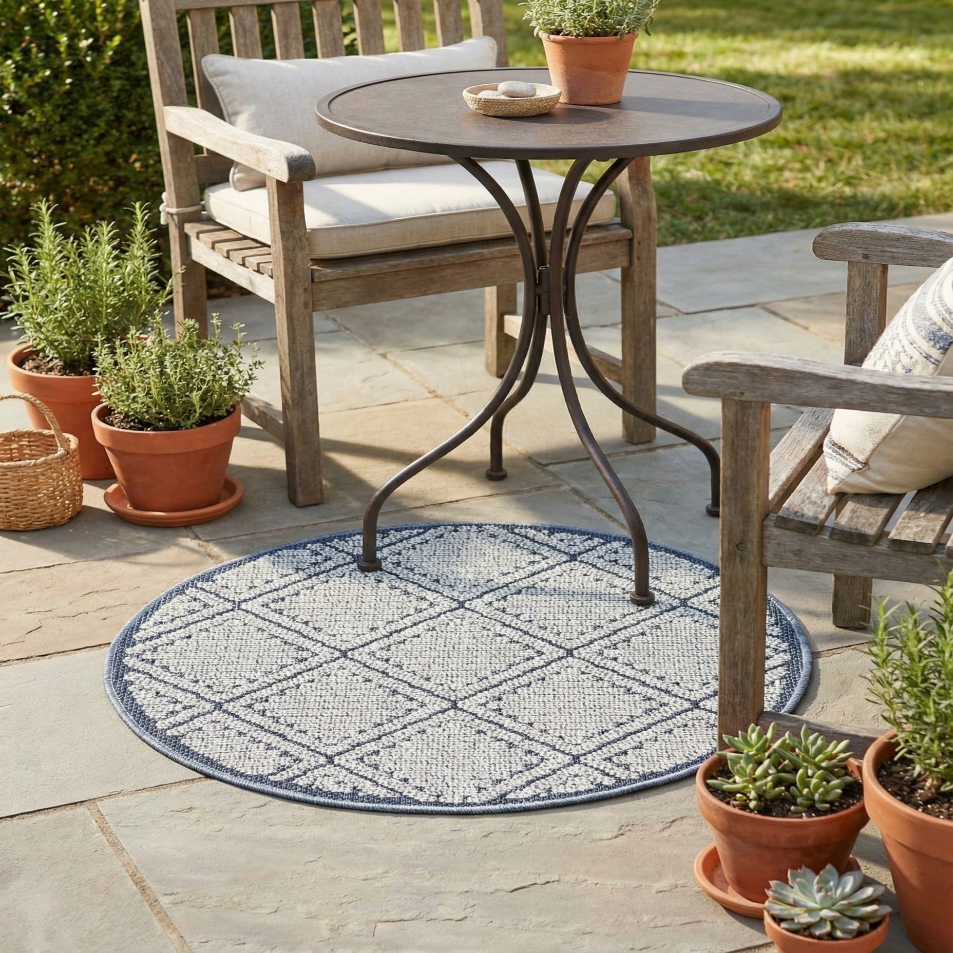 3' 1 x 3' 1 Washable Trellis Indoor / Outdoor Round Rug