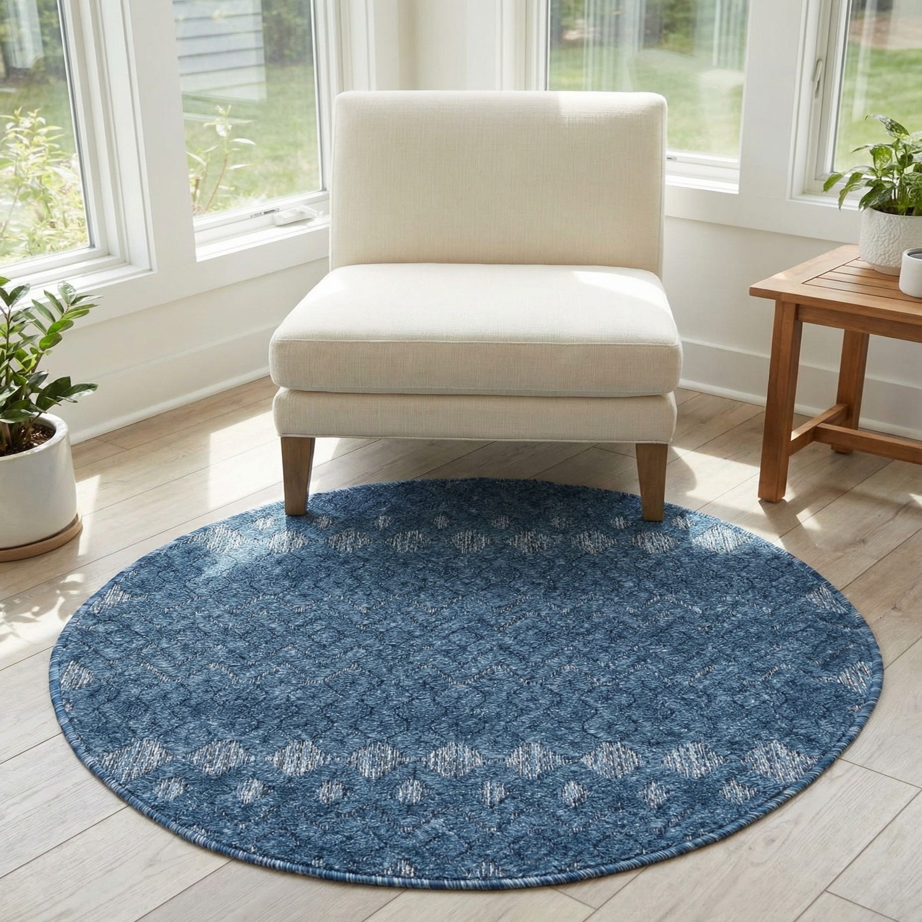 3' x 3' Washable Trellis Textured Indoor / Outdoor Round Rug