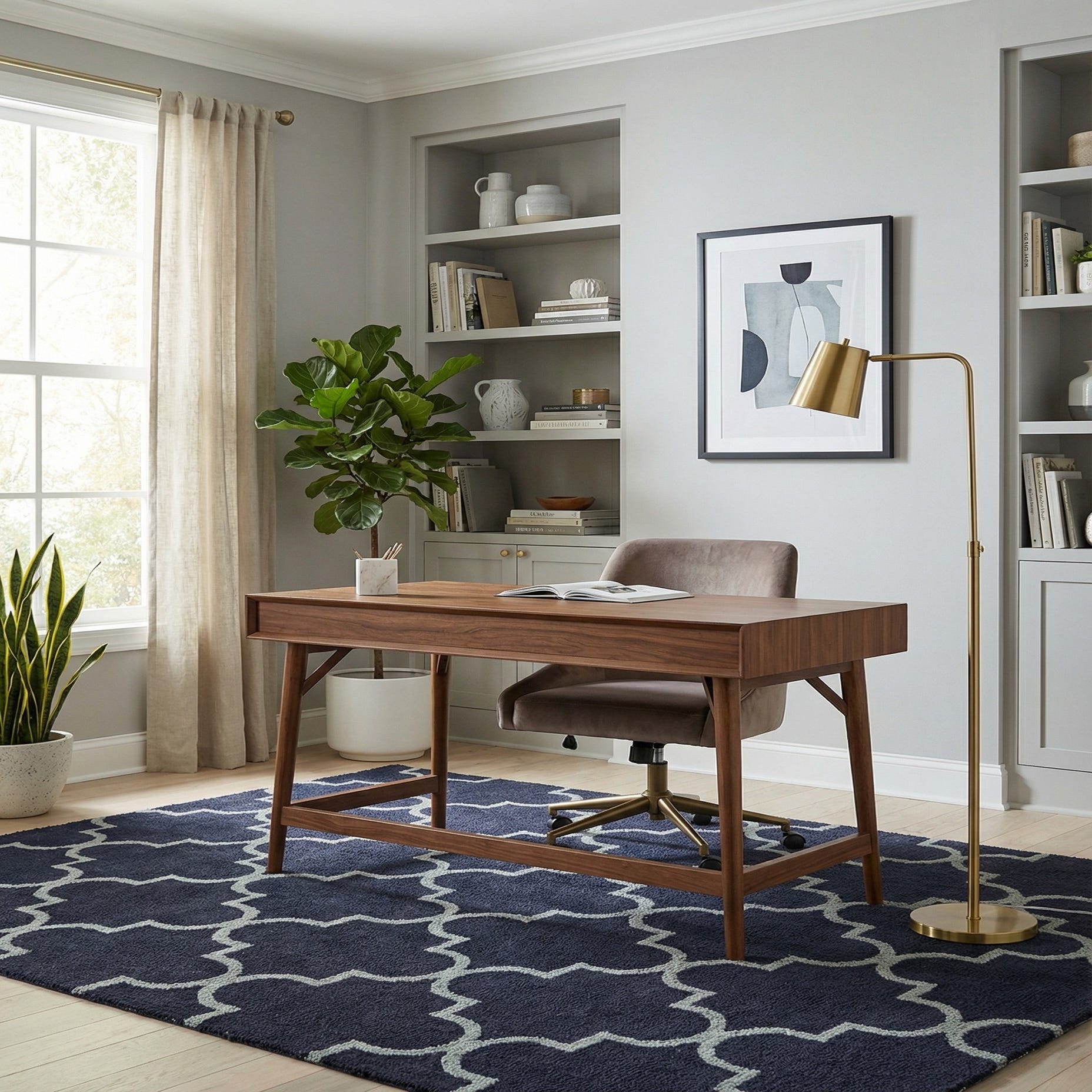 Primary color is Navy Blue. Colors in this rug include: Navy Blue, Gray.