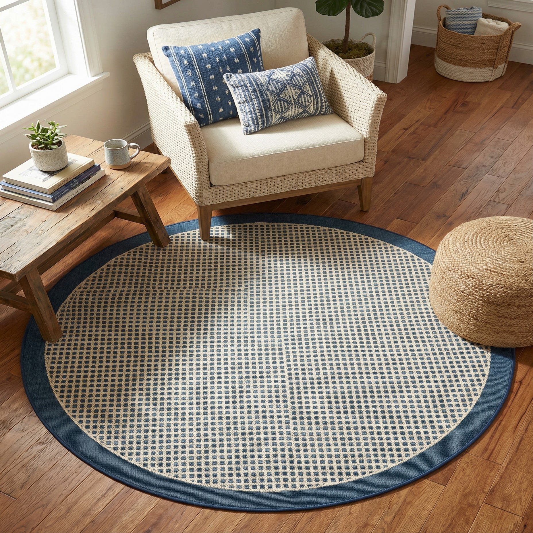 4' x 4' Washable Border Indoor / Outdoor Round Rug