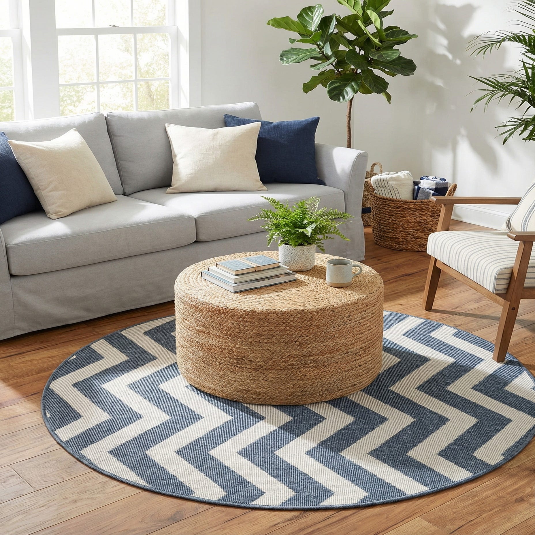 Primary image 4' x 4'  Washable Coastal Indoor / Outdoor Round Rug