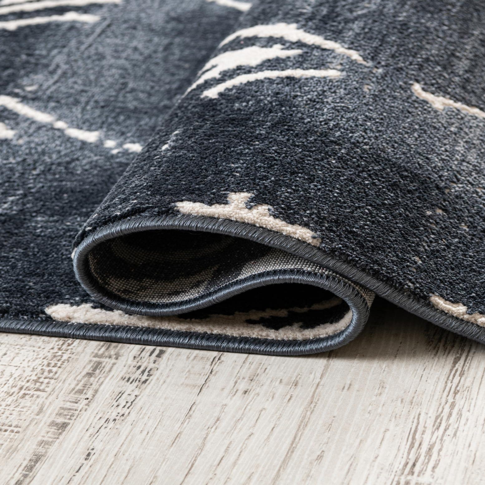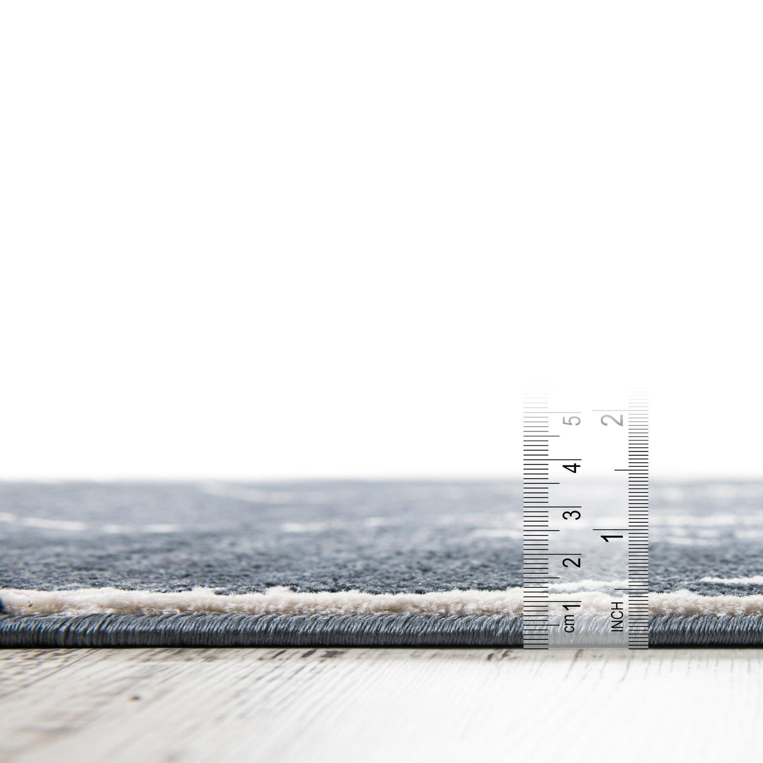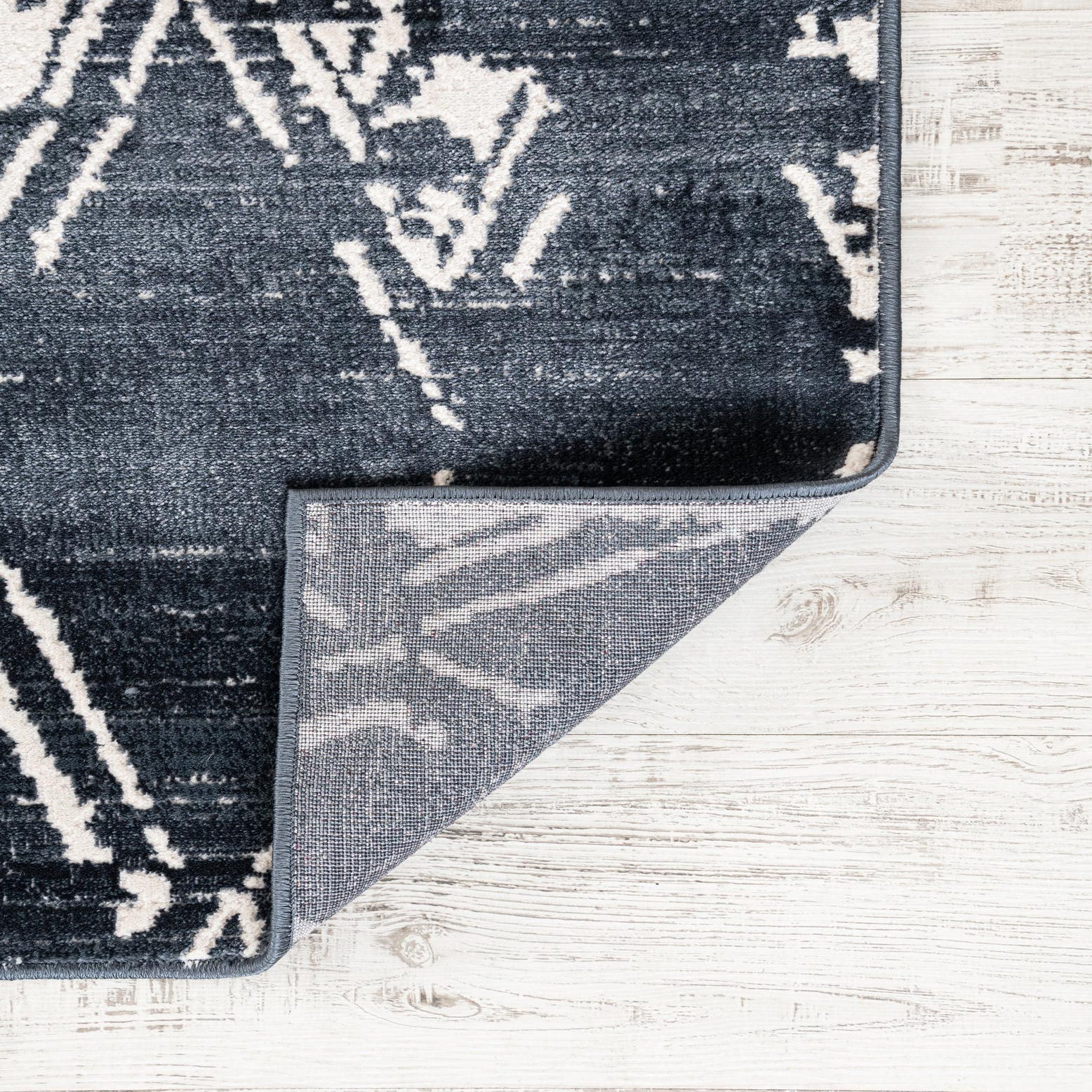 Primary color is Navy Blue. Colors in this rug include: Navy Blue, Ivory.
