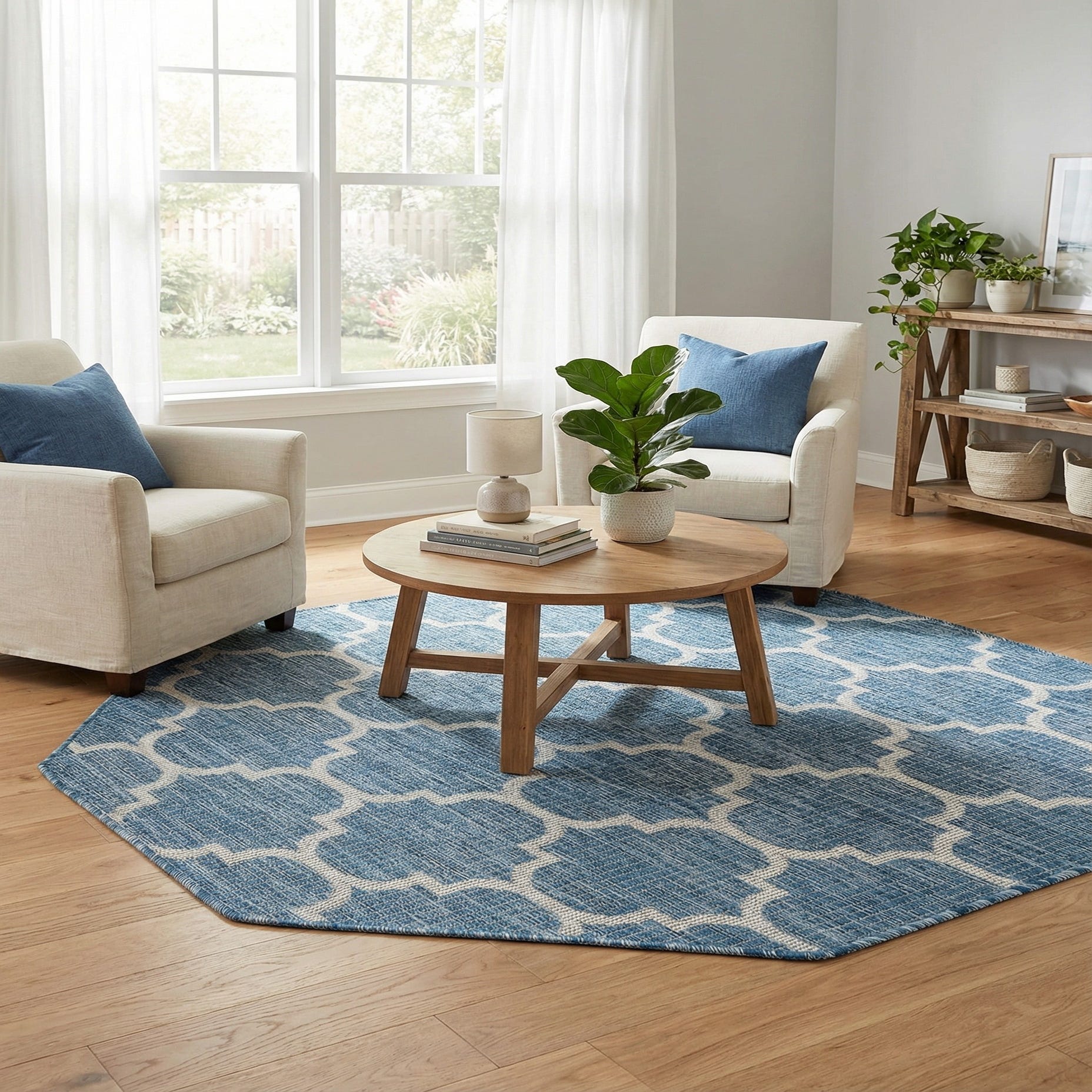 5' 3 x 5' 3 Washable Trellis Indoor / Outdoor Octagon Rug