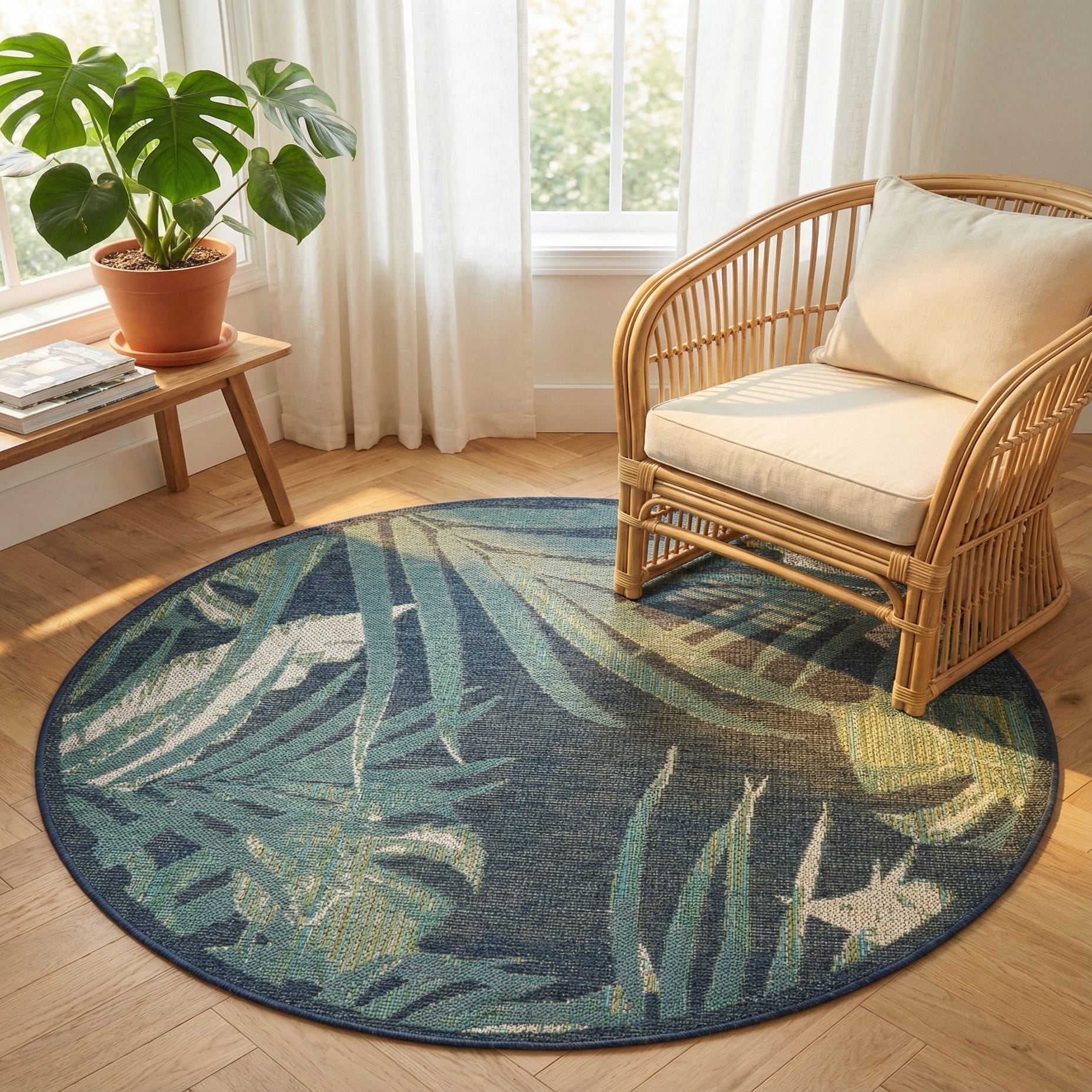 5' 3 x 5' 3 Washable Baja Indoor / Outdoor Round Rug