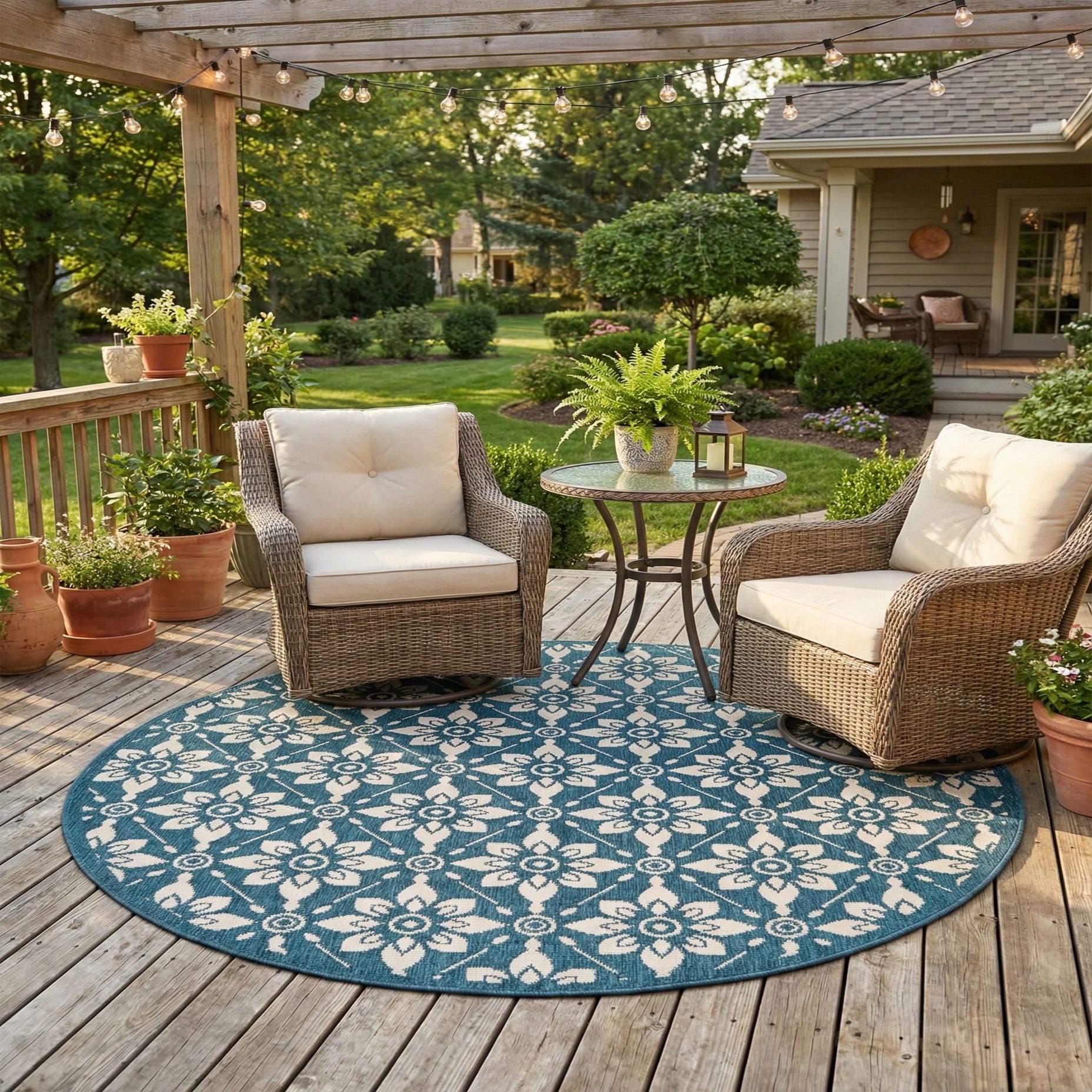 5' x 5' Washable Trellis Indoor / Outdoor Round Rug