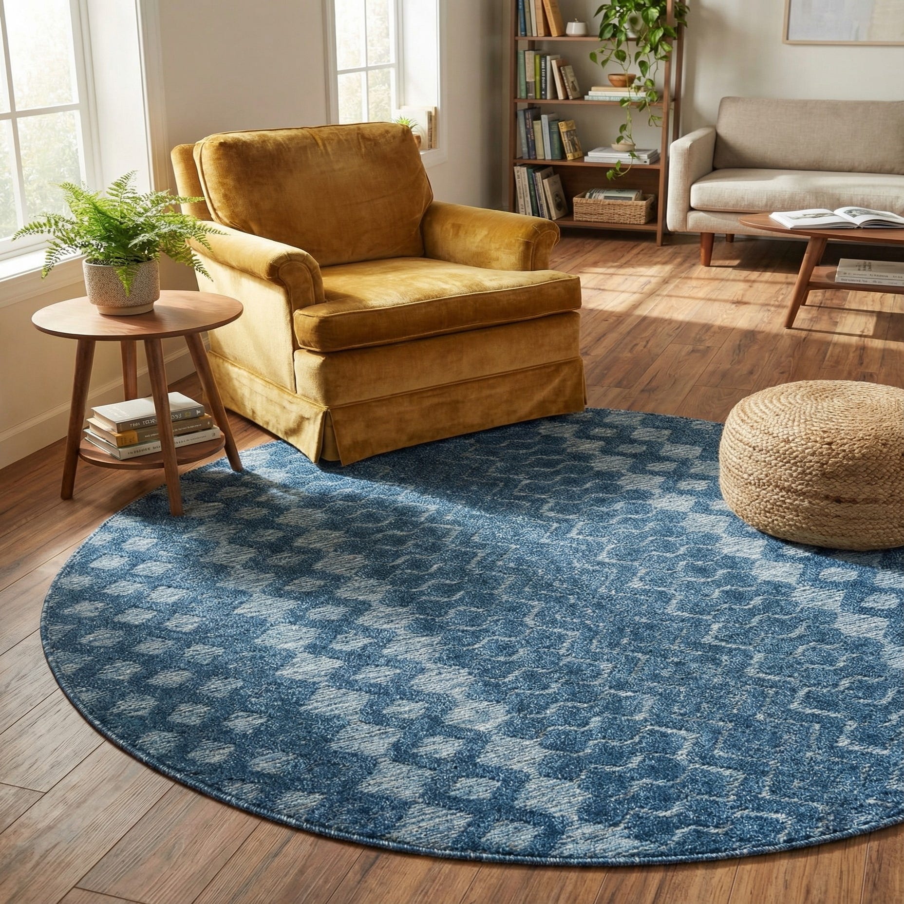 5' 3 x 5' 3 Washable Trellis Textured Indoor / Outdoor Round Rug
