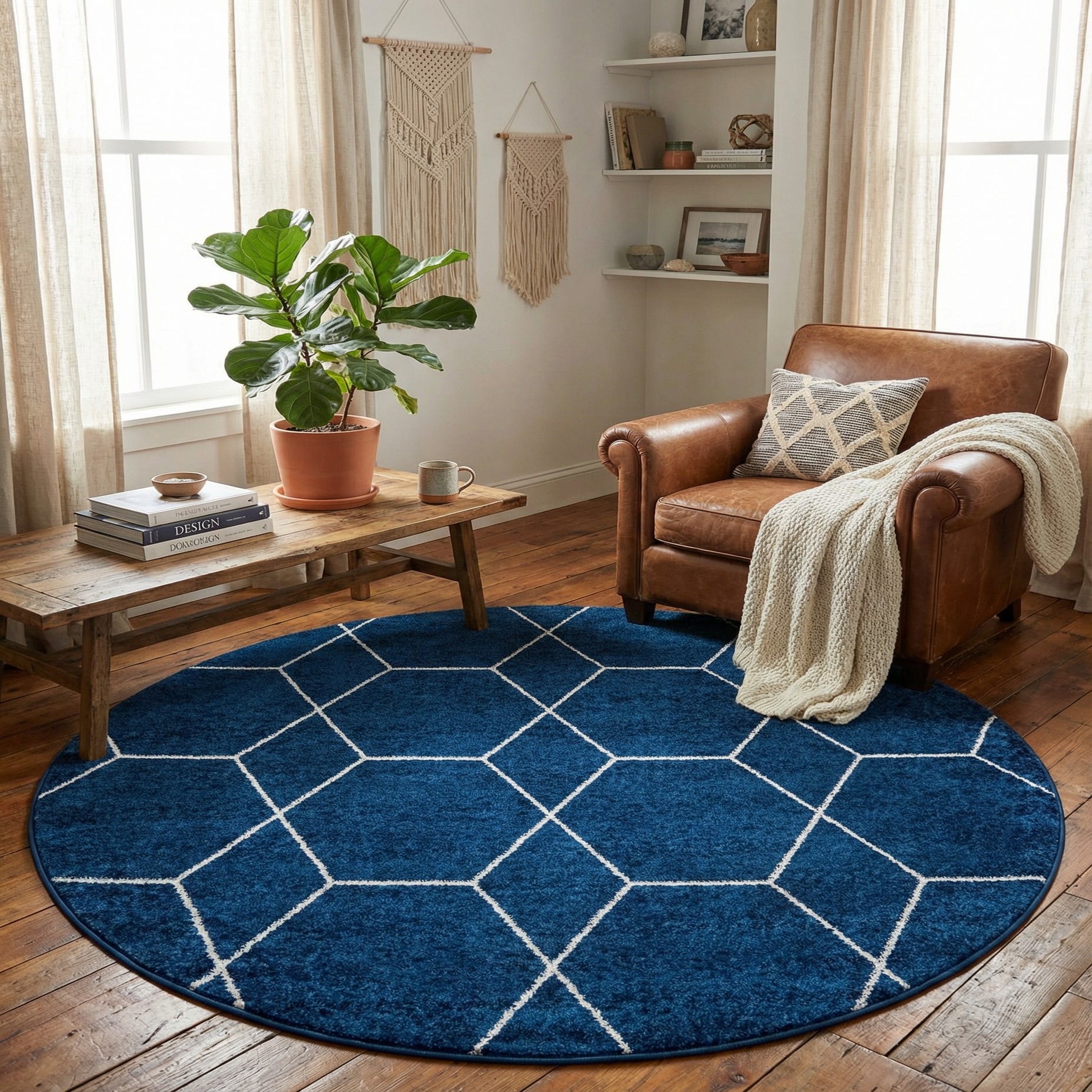 5' 3 x 5' 3 Trellis Frieze Round Rug
