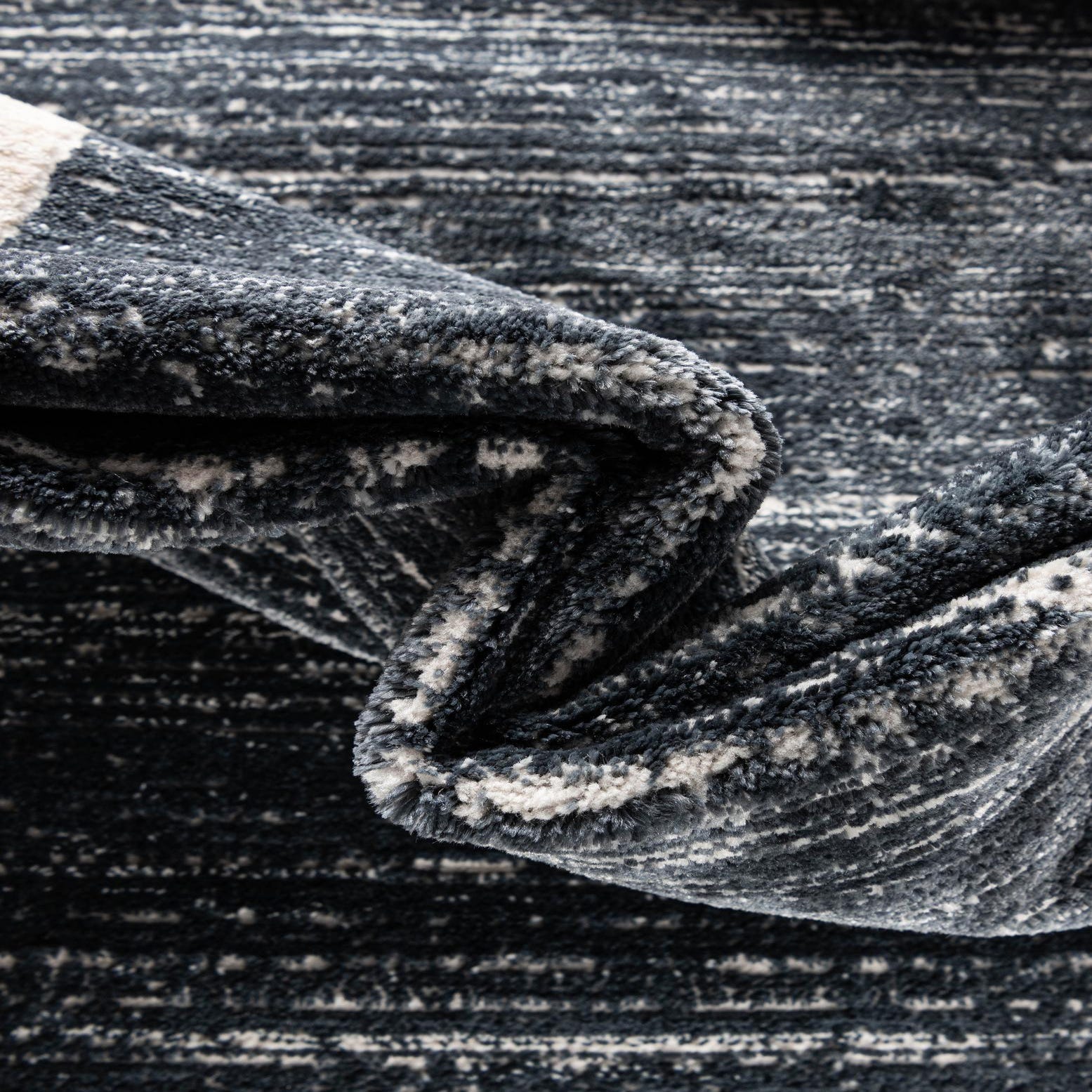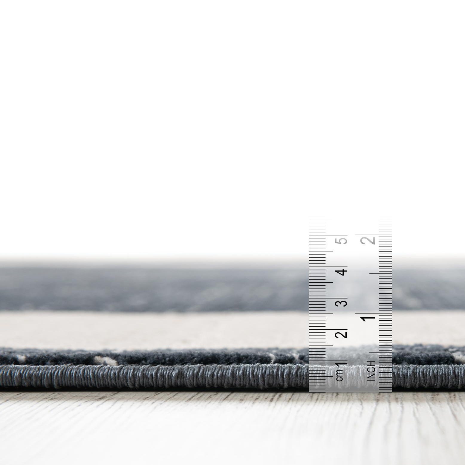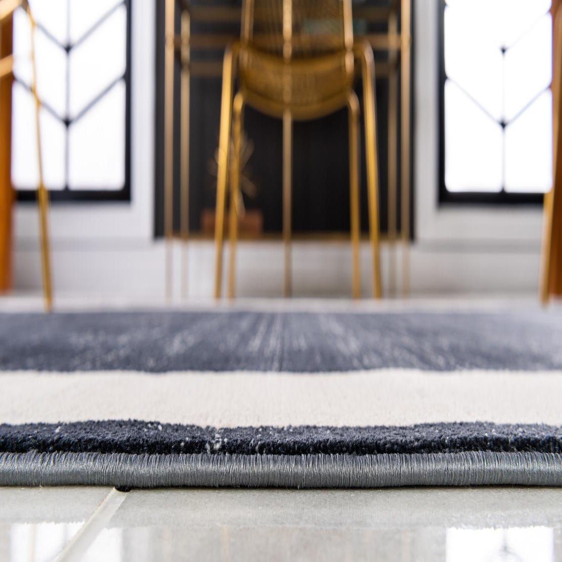 Primary color is Navy Blue. Colors in this rug include: Navy Blue, Ivory.